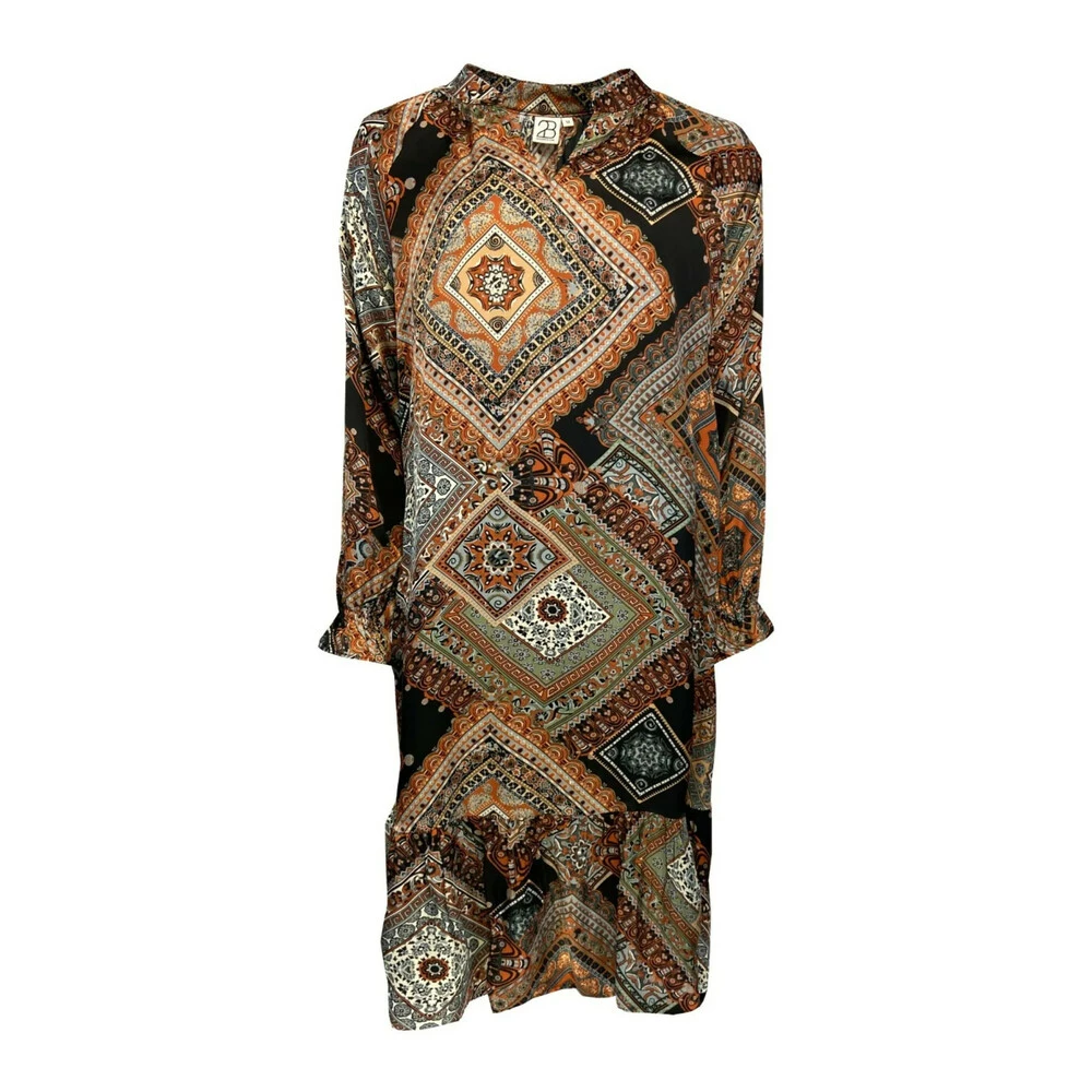 MERK! Ekstern lagring. Levering kan forlenges med 1-2 dager hvis varen ikke finnes i butikken vår akkurat nå. Nydelig kjole fra 2-biz med lange ermer og et fint trykk i klare farger. Kjolen har små ruffles rundt ermene og i skjørtet, i tillegg til en feminin V-kutt i halsen. · Fit: Løs -Fitting · Modell: Telida kjoler Telida Clay · Kvalitet: 100% Viskose