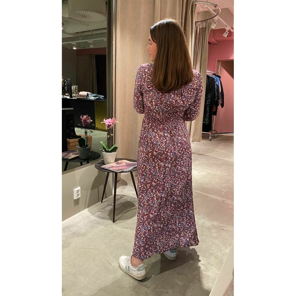 Fantastisk kjole fra American Dreams Feminin modell med strikk under brystet som går hele veien rundt livet En kjole til mange anledninger 100% viscose Vaskes på 30 grader