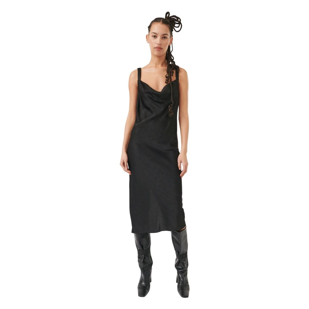 Figur -laget kjole med å samle skulderstropper, drapert ringing og slitt bakerst fra Baum und Pferdgarten. Materiale 100% polyesterfarge svart