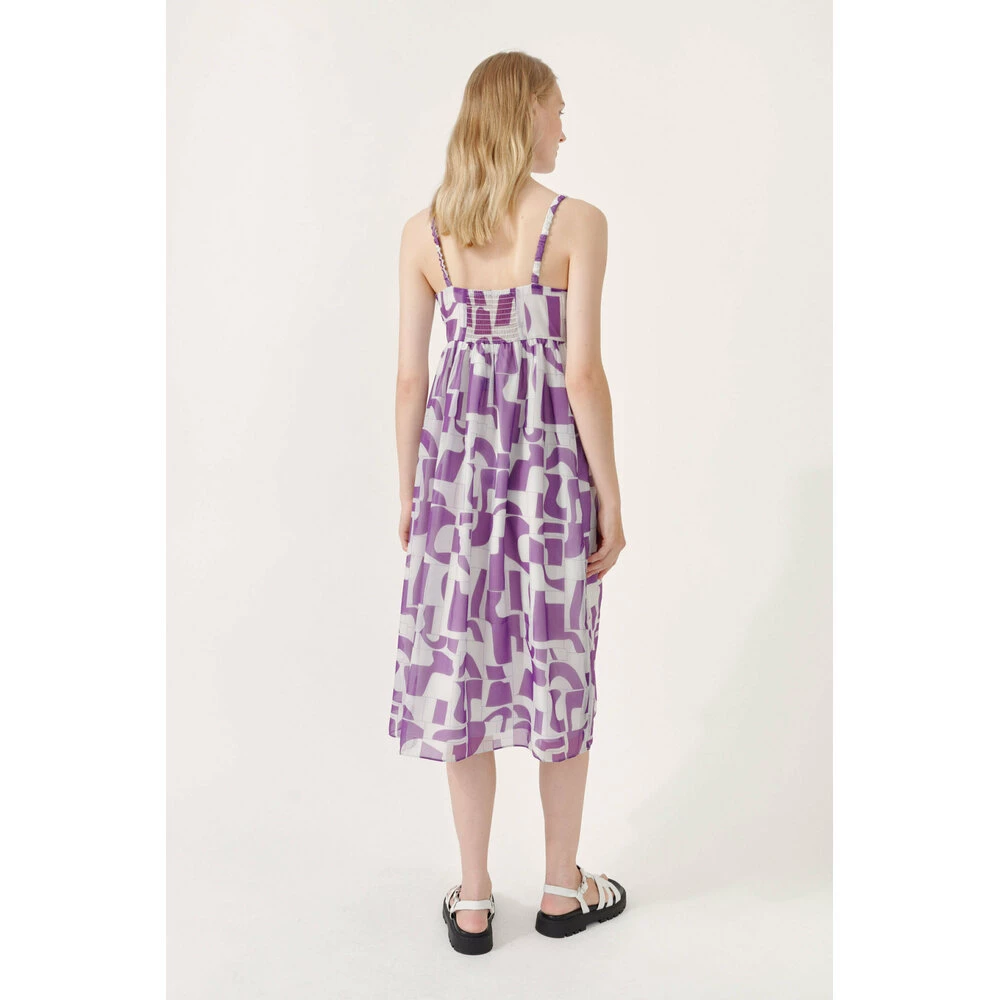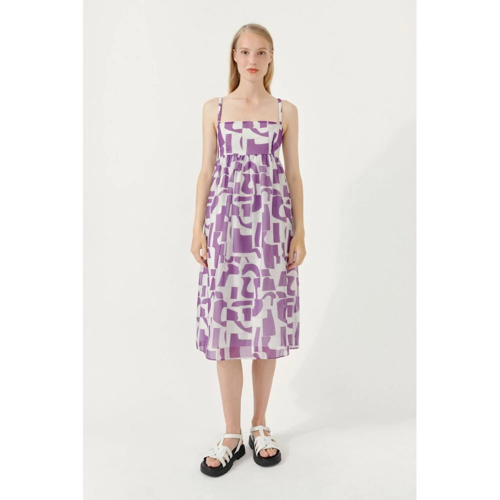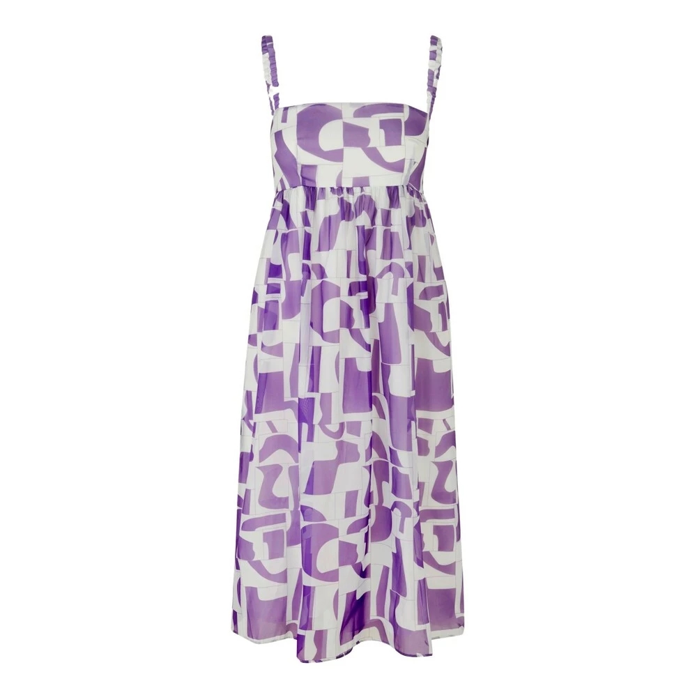 Aspen Dress fra Baum Und Pferdgarten. Midikjole med spagettistropper, elastiske stropper og empireliv med formsydd overdel. Det er glidelås i siden. Kjolen har normal passform og helfôret skjørt. Normal i størrelsen. Materiale: 100% Polyester. Lining.