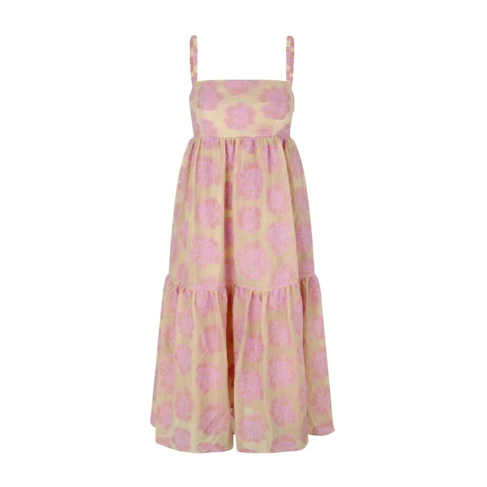 Midi -kjole med striper, samtaleimperium, lyn på siden og sying med strekk. Bosom er oppfunnet og slimhinnen har volum. Med undertøy. – tegne « tidligere, LightFit i bunnen