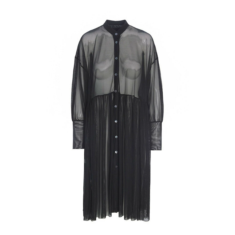 MERK! Ekstern lagring. Levering kan forlenges med 1-2 dager hvis varen ikke finnes i butikken vår akkurat nå. Vakker kjole fra Bitter Kai Rand med mye bredde i en litt gjennomsiktig polyesterkvalitet. Den har et kutt i midjen og bunnen er rynket for å gi ekstra bredde til kjolen. På ermene er det brede mansjetter som gir en letthet til designet. · Fit: Løssittende · Modell: Mesh Tyllkjoler 227-2314-3920 Svart · Kvalitet: 96% Polyester, 4% Elasthan · Vask: 30 grader Fin vask