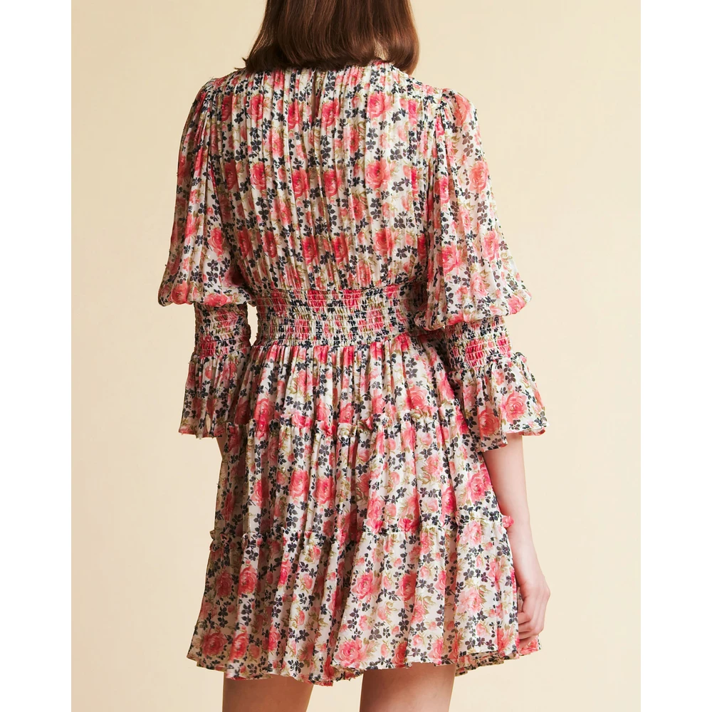Nydelig, kort kjole med rund hals og 3/4 ermer . Smalere i livet, noe som gir den et lekkert feminint yttrykk.