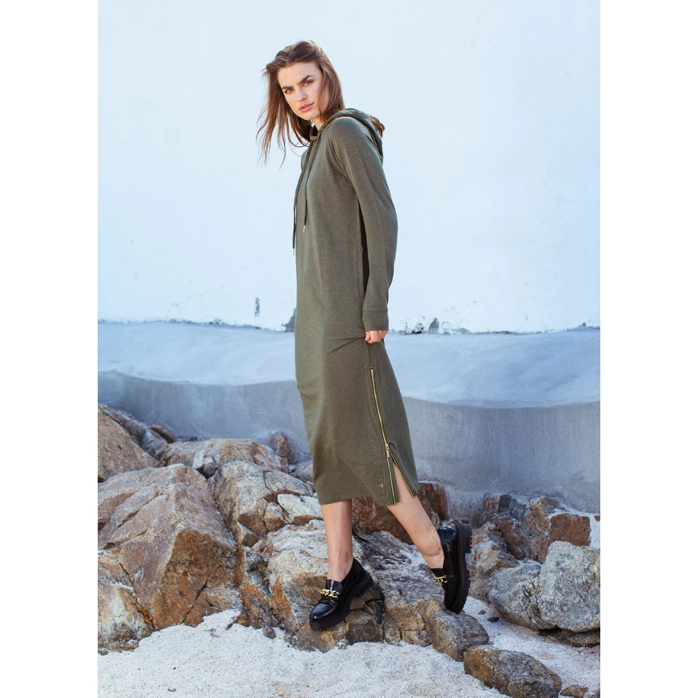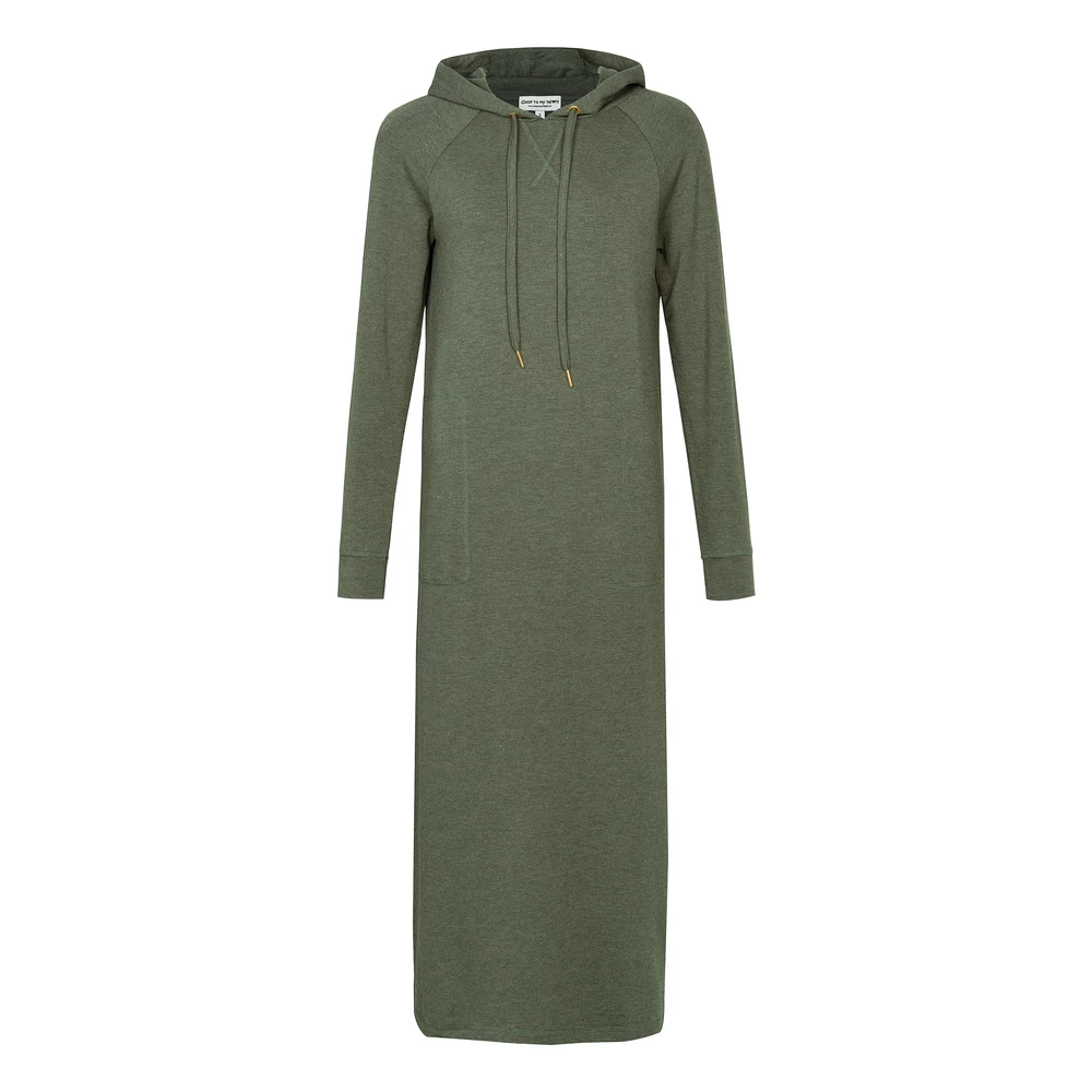 En superkomfortabel maxikjole i vÄr myke jersey kvalitet! Den har enkel passform med hette, har dekorative snÞring i nakken og raglan-ermer. Sidelommer og glidelÄs nederst til venstre med logoen vÄr brodert tone-pÄ-tone nedover siden. Den perfekte kjolen Ä slappe av hjemme eller ha pÄ seg med en skinnjakke og et par joggesko! MÄl i stÞrrelse M: Lengde: 128 cm Armlengde: 68 cm BryststÞrrelse: 96 cm