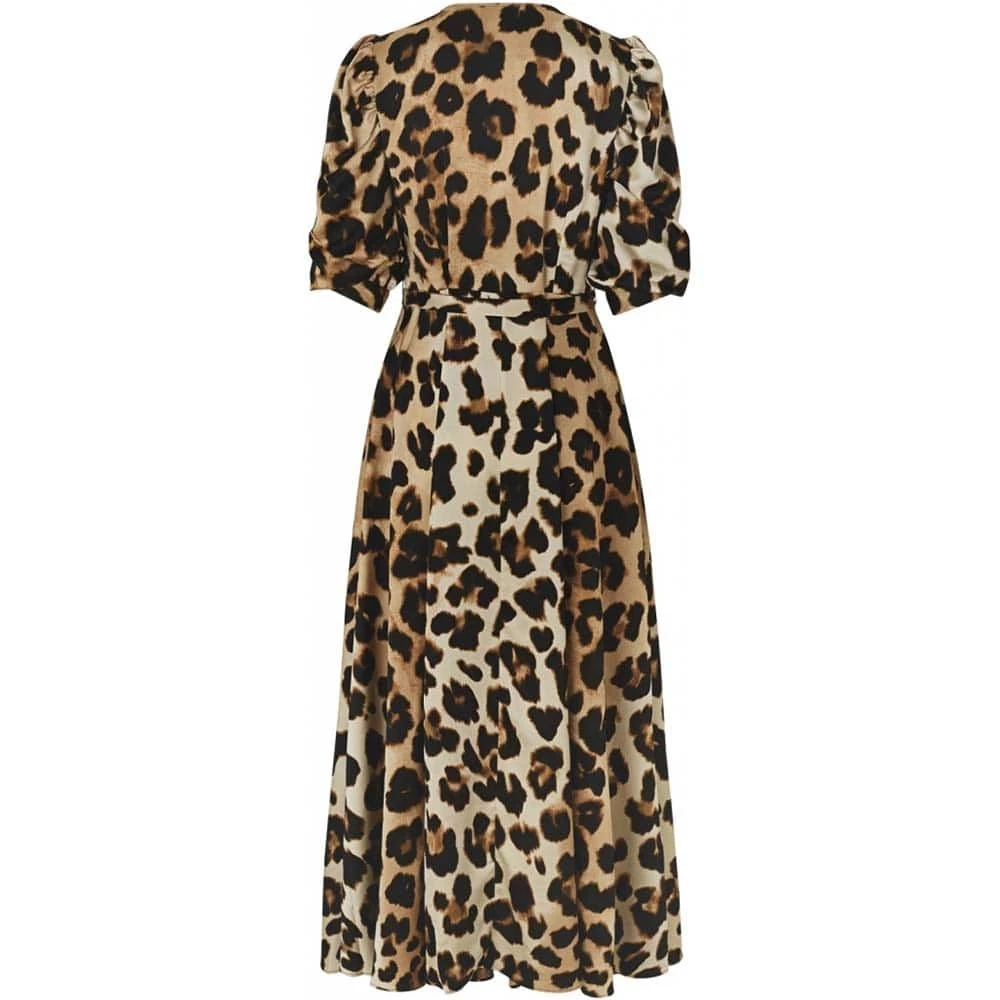 Maxi kjole med volum og stilige korte puffer. Skjult glidelås foran og knyt bånd i midjen. Laget av 100% resirkulert polyester fra plastavfall.