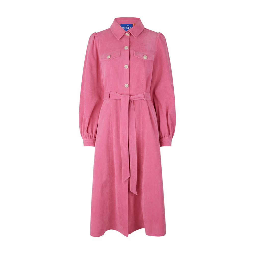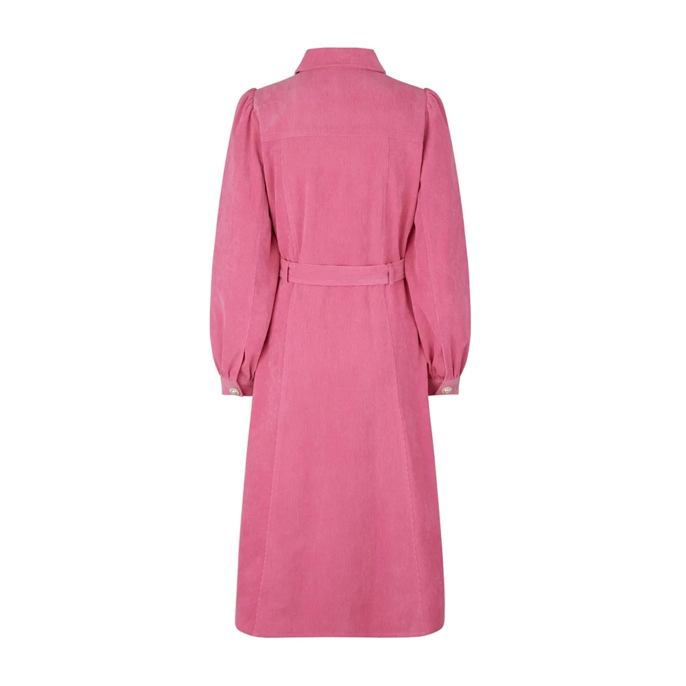 Celine Dress fra Cras. Nydelig kjole i kordfløyel med voluminøse ermer, belte i livet som kan fjernes og statement knapper. Materiale: 50% resirkulert polyester, 37% polyester, 10% nylon og 3% elastane