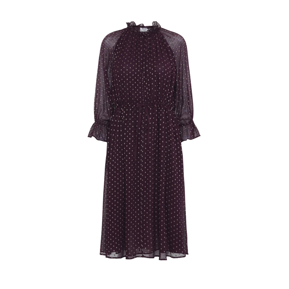 Nydelig prikkete kjole fra Day Birger et Mikkelsen. Kjolen har høy hals og luftig stoff. Knyting rundt midjen som gir den en fin fasong. Kjempefin festkjole som er perfekt for denne sesongens festligheter. Normal i størrelsen. Materiale: 86 % Viskose, 14 % Metall fiber
