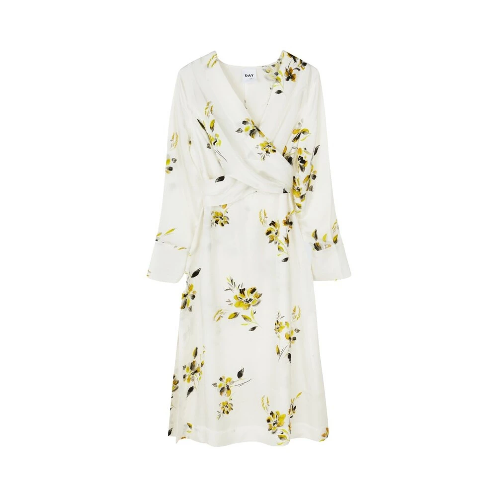 Beskrivelse: En mid-calf lengde, A-Line kjole med slisser på mansjettene og en V-hals. Kjole har to paneler som krysser foran og knytter seg tilbake for en wrap-effekt. Det er en glidelås på siden. Bruk med en skarp jakke for et sofistikert natt ute. Kvalitet: 100% viskose