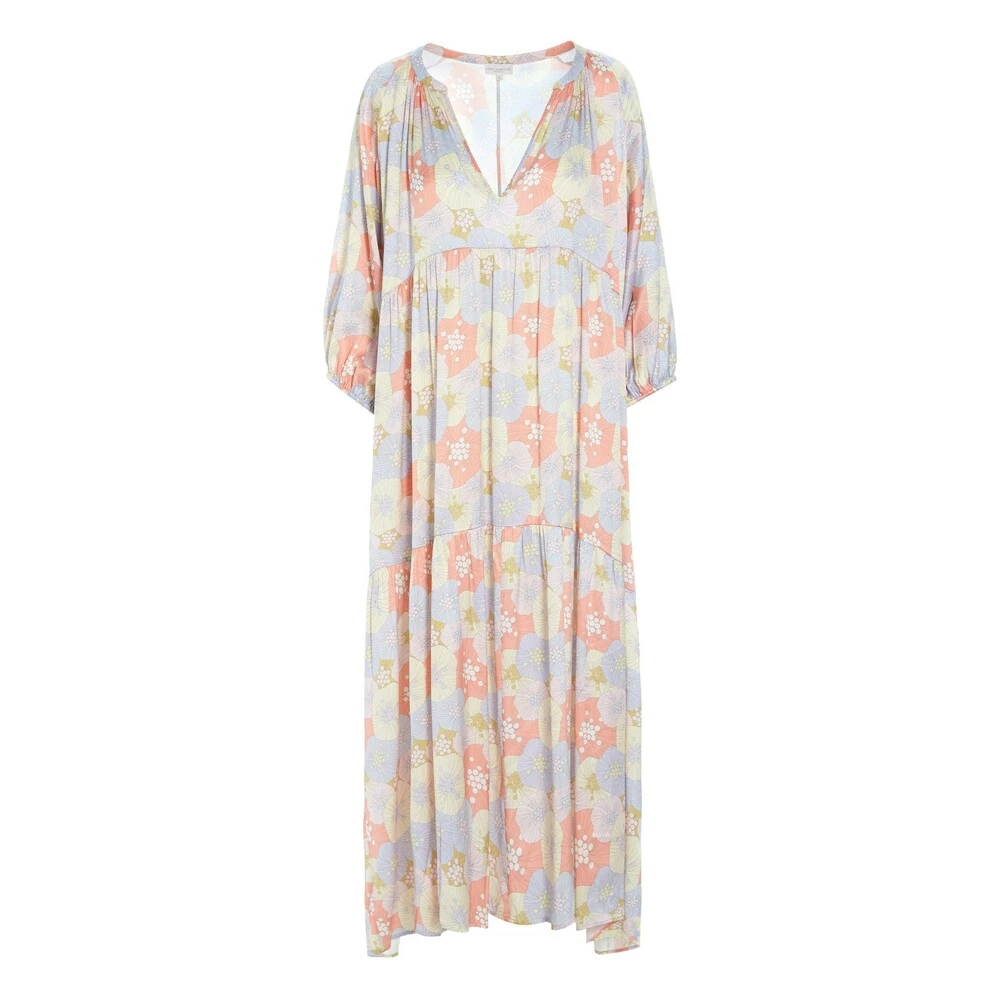 Maxikjole med V-hals og 3/4-ermer.