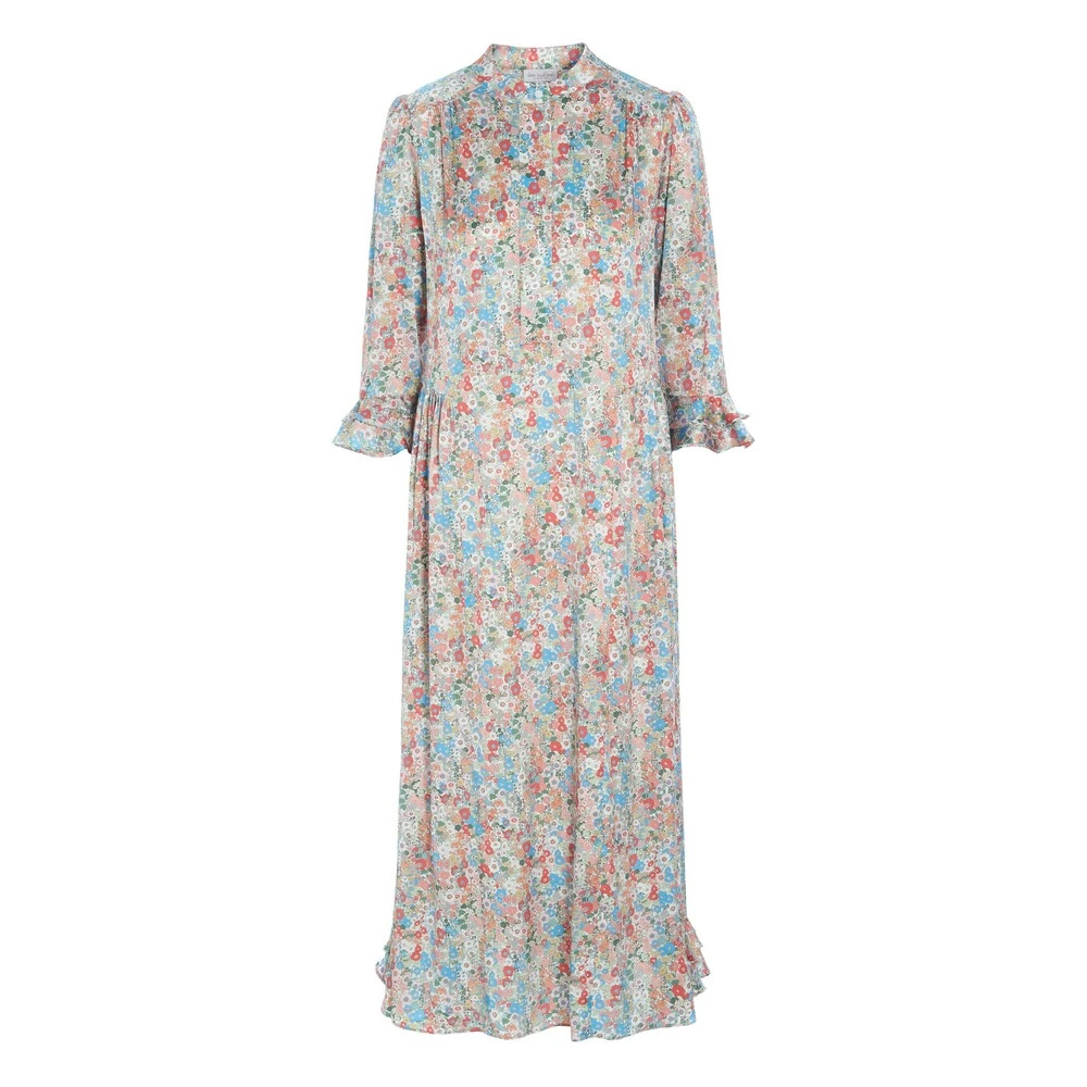 Midikjole med volangdetaljer, skjult stolpe og sidelommer. Materiale: 90% silke, 10% elastan Produktstil-ID: 48-0122_5520 Denne beskrivelsen har blitt oversatt automatisk.