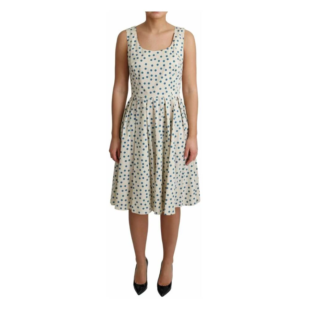 Dg nydelig splitter ny med tags, 100% autentisk Dolce ; Gabbana kjole. Modell: Ermeløs A-Line Kjole Farge: Beige med Blue Polka Dots Glidelås Lukking på baksiden Logo Detaljer gjort i Italia Materiale: 100% Bomull