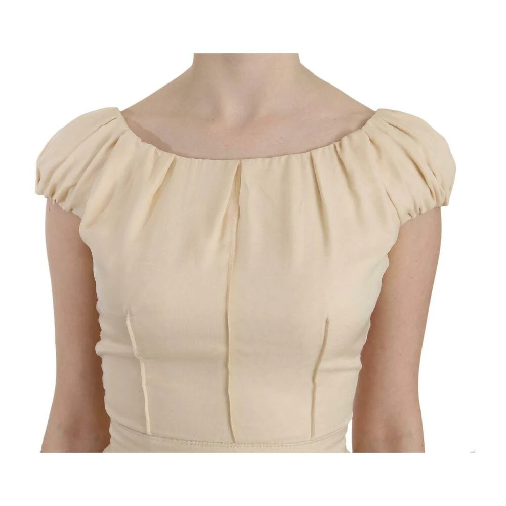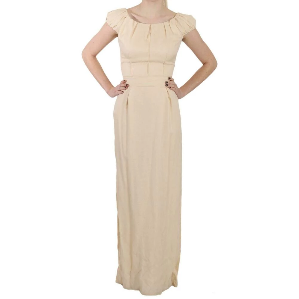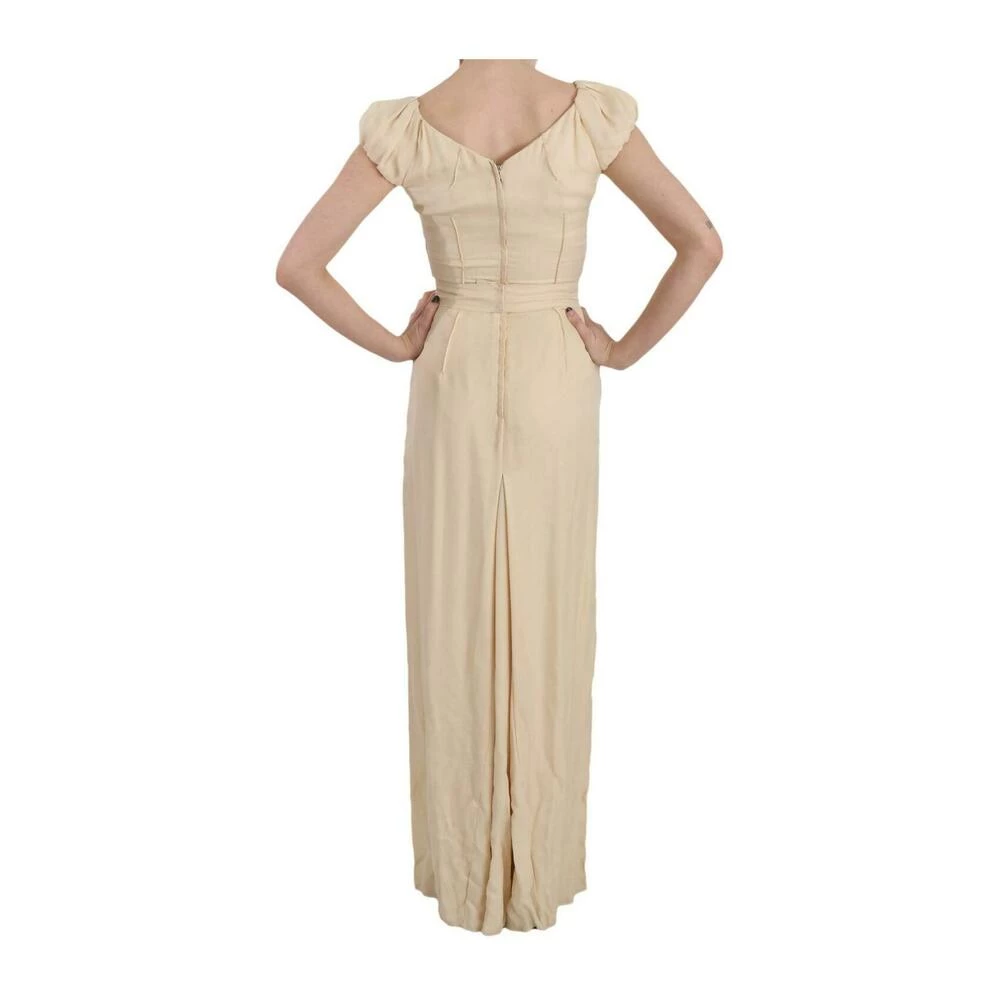 Gorgeous splitter nye med koder, 100% autentisk Dolce ; Gabbana kjole Beige Silk Column Garterized ermet kjole