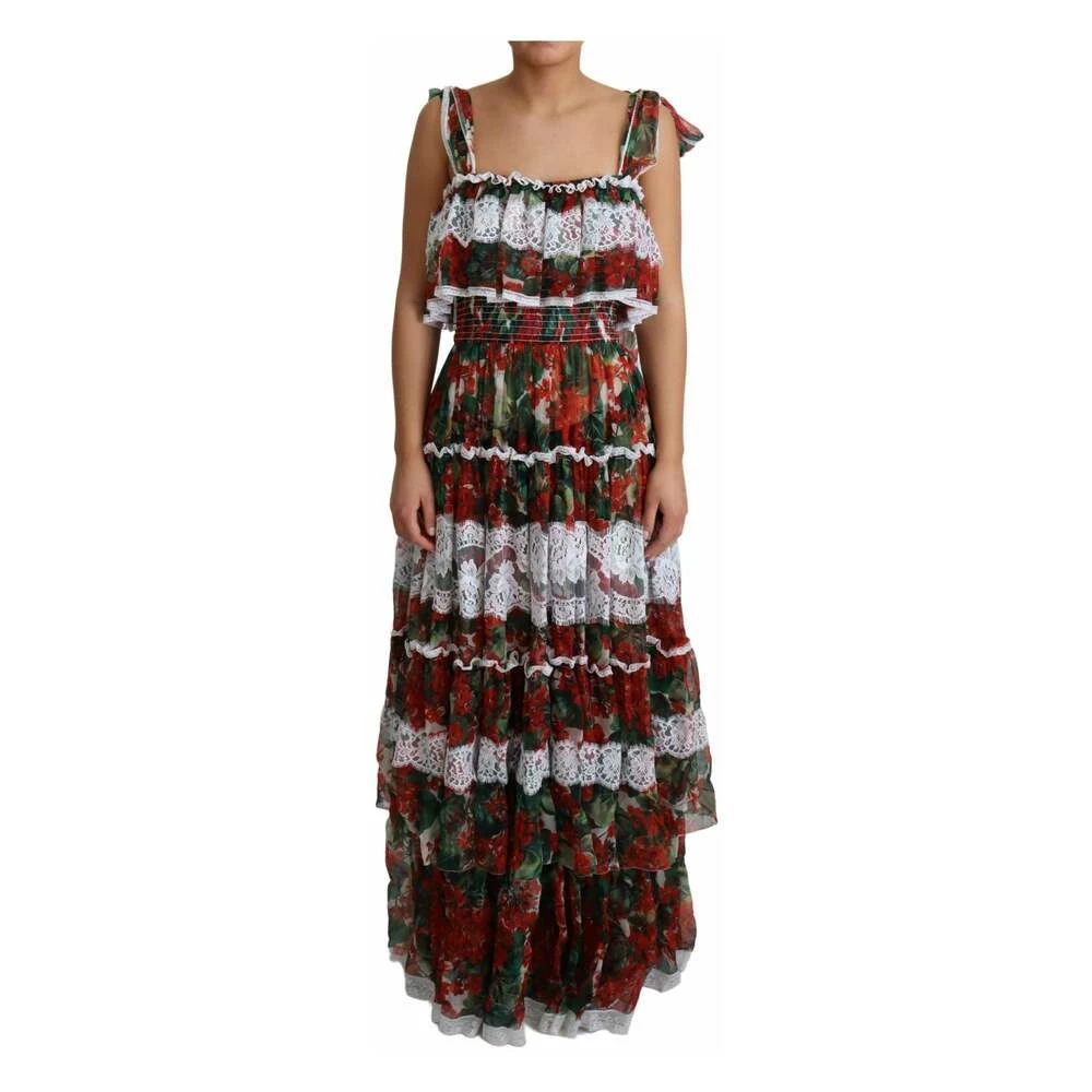 Dolce ; Gabbana Nydelig helt nytt med tagger, 100% autentisk Dolce ; Gabbana montert kjole med brede frills, lange bånd bundet med voluminøse buer på skuldrene og innsatsen til hvit ledning blonder laget av gjennomskinnelig silke med en lys portofino -trykk. Modell: Maxi Dress Farge: Multikolors blomsterutskrift Lokalavslutning Logo Detaljer laget i Italia Materiale: 60% silke 34% bomull 6% nylon60% silke 34% bomull 6% nylon