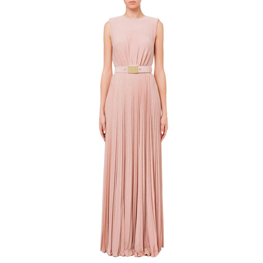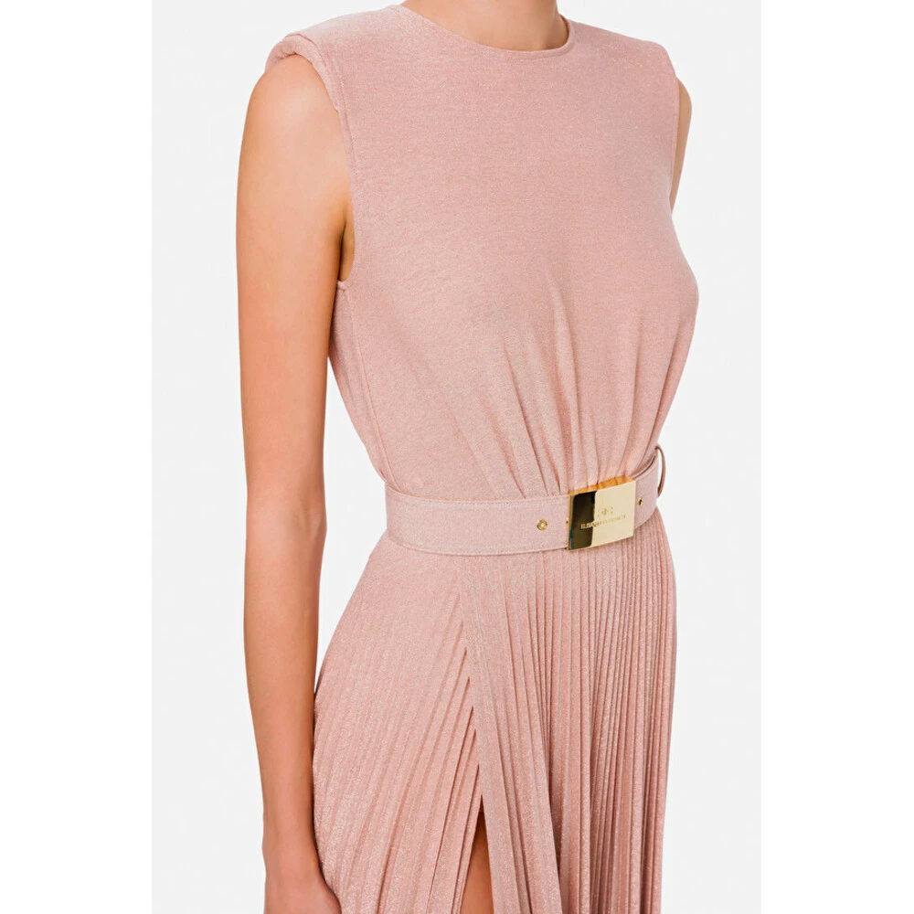 Kle deg i pudderrosa. Dyp utringning på ryggen. Plissert skjørt som åpner til dobbel splitt på siden. Tynt belte med spenne med logo i gullfarget metall. Materiale: Viskose 66 %, Polyester 15 %, Polyamid 15 %, Elastan 4 % Produktstil-ID: AB21822E2 Denne beskrivelsen har blitt oversatt automatisk.