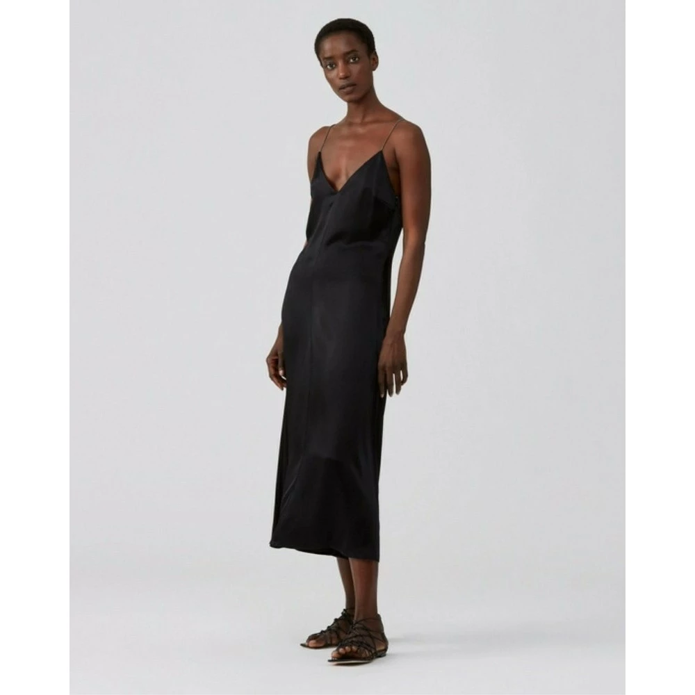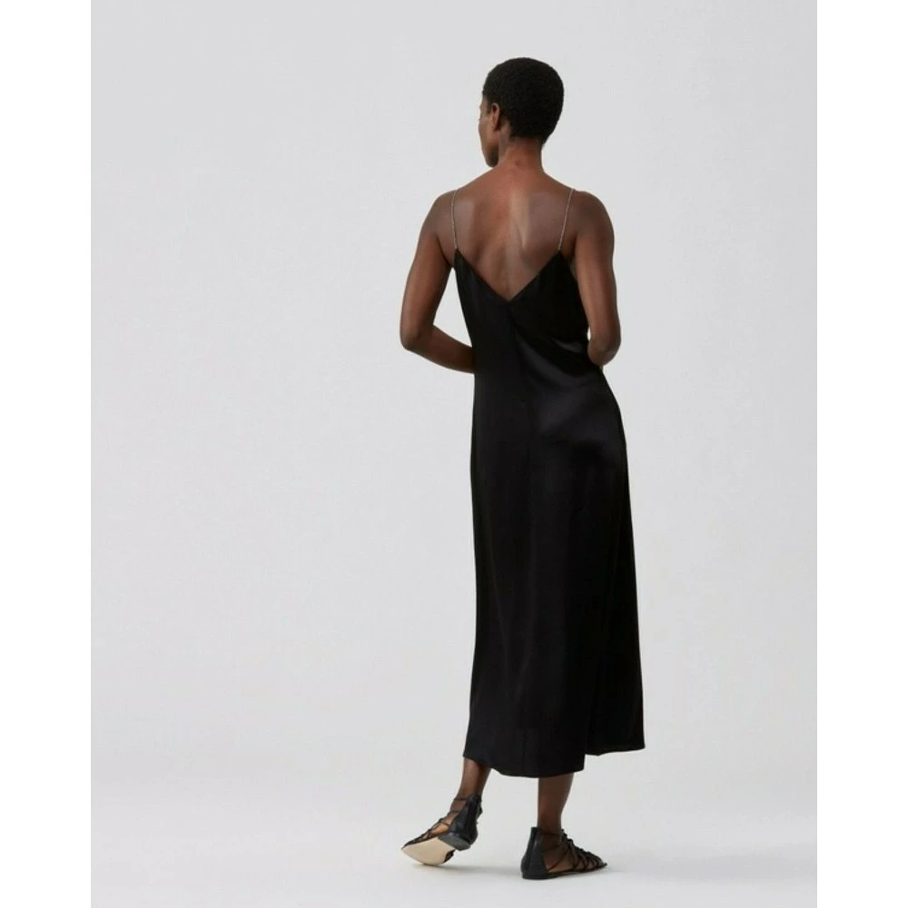 V-hals.,, Spaghetti stropper., Satin finish., Farge: svart, myk passform, 74% acetat 26% silke, laget i Italia,