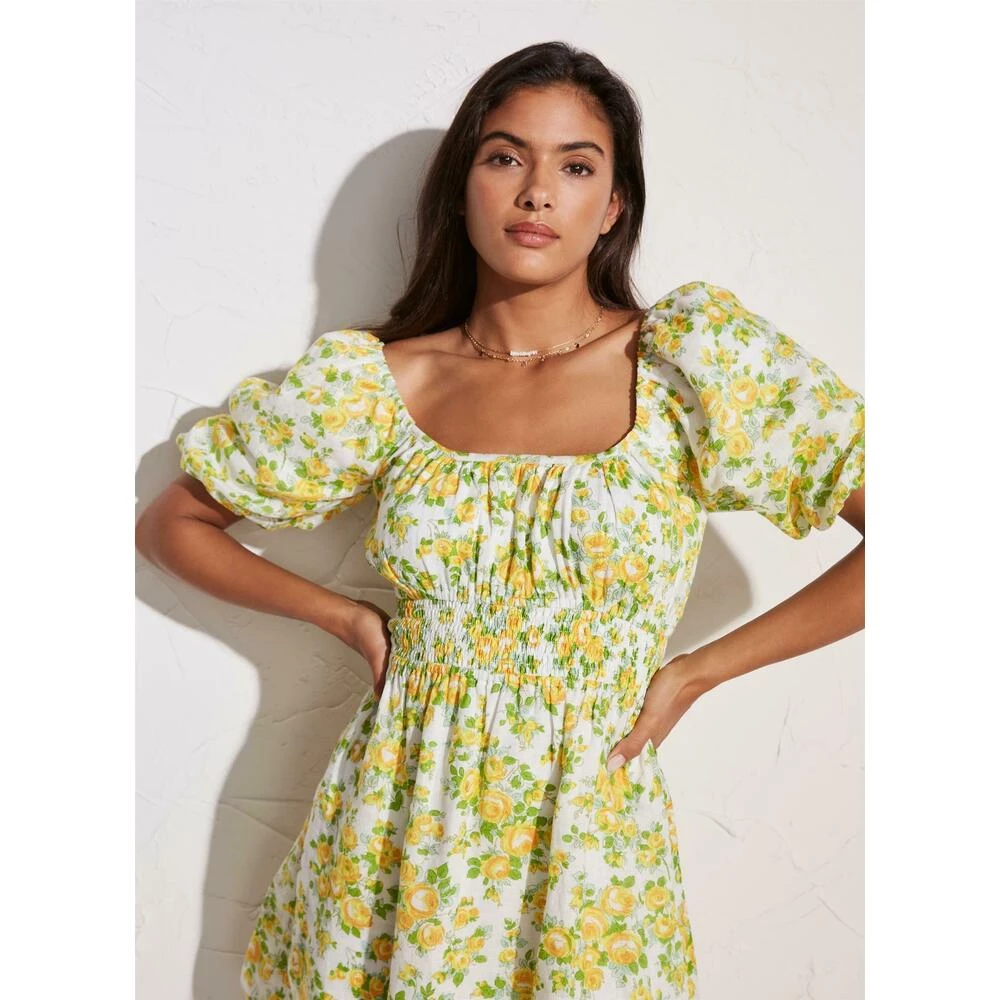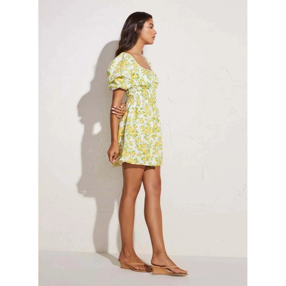 Axel Mini-kjolen har en scoop-utringning med bindingsdetalj, puffermer med innerfôr, elastisk linning og rynket miniskjørt. Denne forede minikjolen laget i vårt vintage-inspirerte Morello-blomstertrykk. Kutt av pustende lin, med sertifiserte fibre, dyrket og dyrket i Normandie, Frankrike i henhold til den europeiske Flax®-standarden. Denne gjenstanden passer til størrelsen.