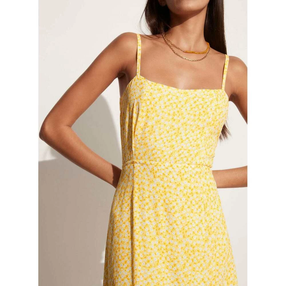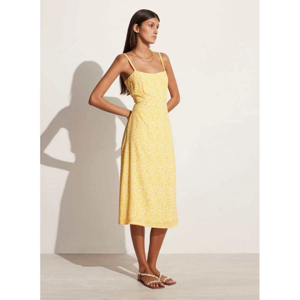 The easy-wearing Jaibas Midi Dress has been hand-printed in our bright Careyes Floral Marigold print on lightweight 100% Rayon Crepe – FSC Certified Fibres. Lined throughout, this dress features a sweetheart neckline, skinny adjustable straps, fixed waistline, A-line midi skirt with side splits and a tie back detail. Pair it back with your favourite strappy sandals or heels to dress the style up. 100% RAYON CREPE – FSC CERTIFED FIBRES Rossana is wearing a size Small and her measurements are Height: 180 cm, Bust: 77 cm, Waist: 58 cm, Hips: 89 cm.