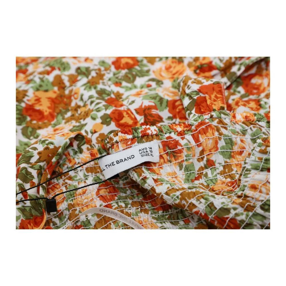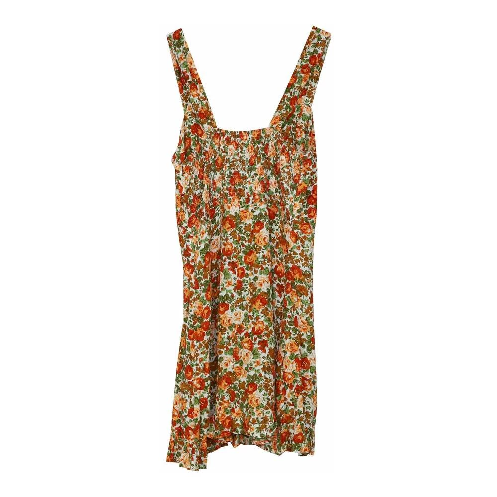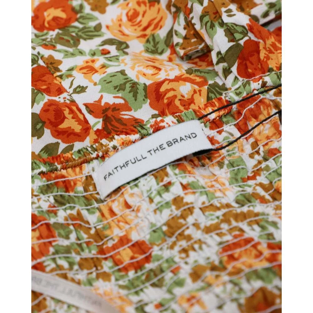 Blomstertrykket har vakre lyse appelsiner, røde Berøringer av grønt. Med en liten kjæreste utringning, naturlig midje, glidelås på siden, ruched bakpanel. Ikke-funksjonelle knapper nedover midten av skjørtet. Samling der stroppene møtes fronten av kroppen. Par med beige hæler for søtt og stilig utseende! Faithfull The Brand Lou Lou Mini Sundress in Floral Print Rayon Sign of Wear: No SKU: 92894 Tilstand: Nytt med tag fortsatt festet farge: Floral Print Materiale: Cellulose Fiber | Rayon Size: XL/IT46/US10/FR42 Produkt -ID: 92894 Original Pris: EUR 181.2Cellulose Fiber | Rayon