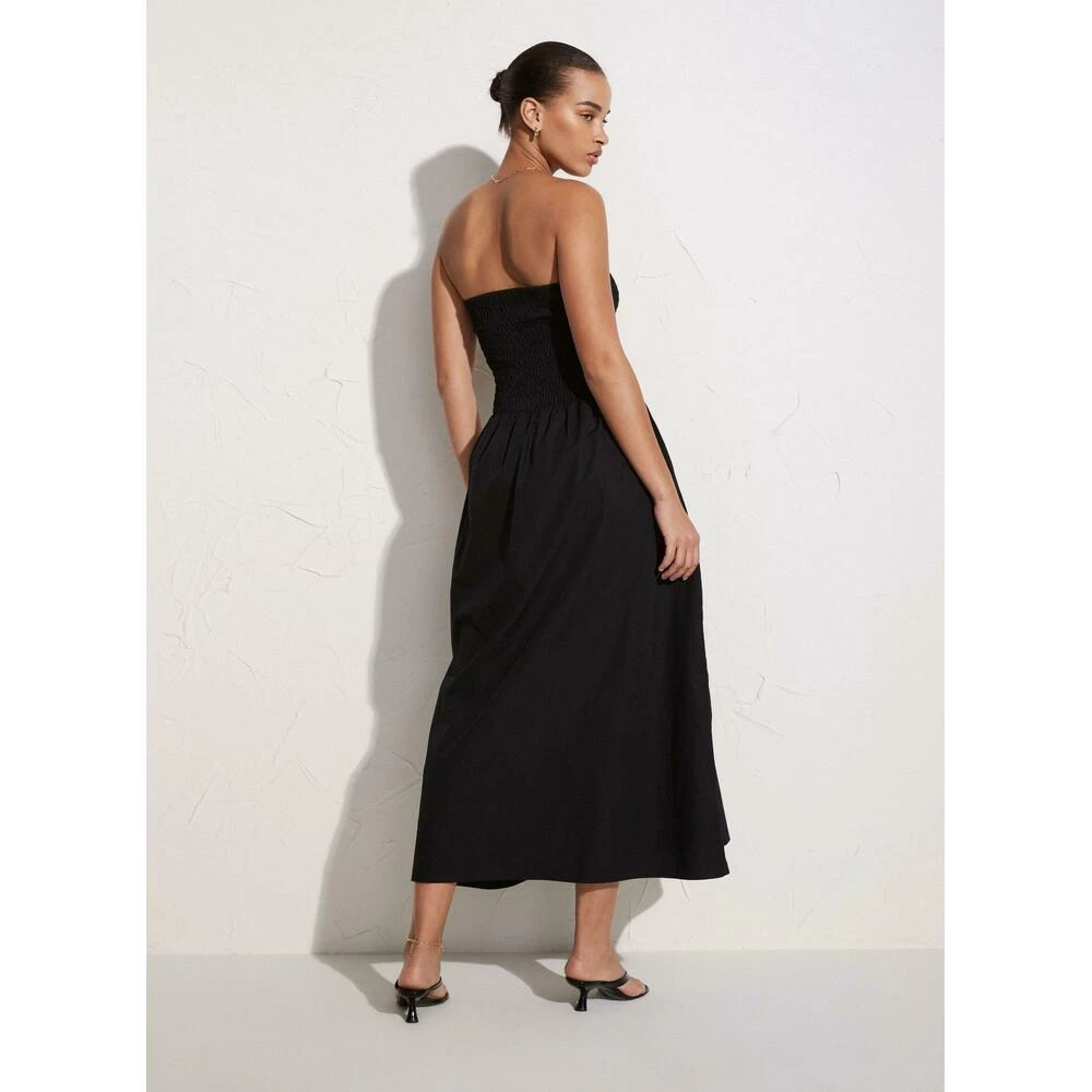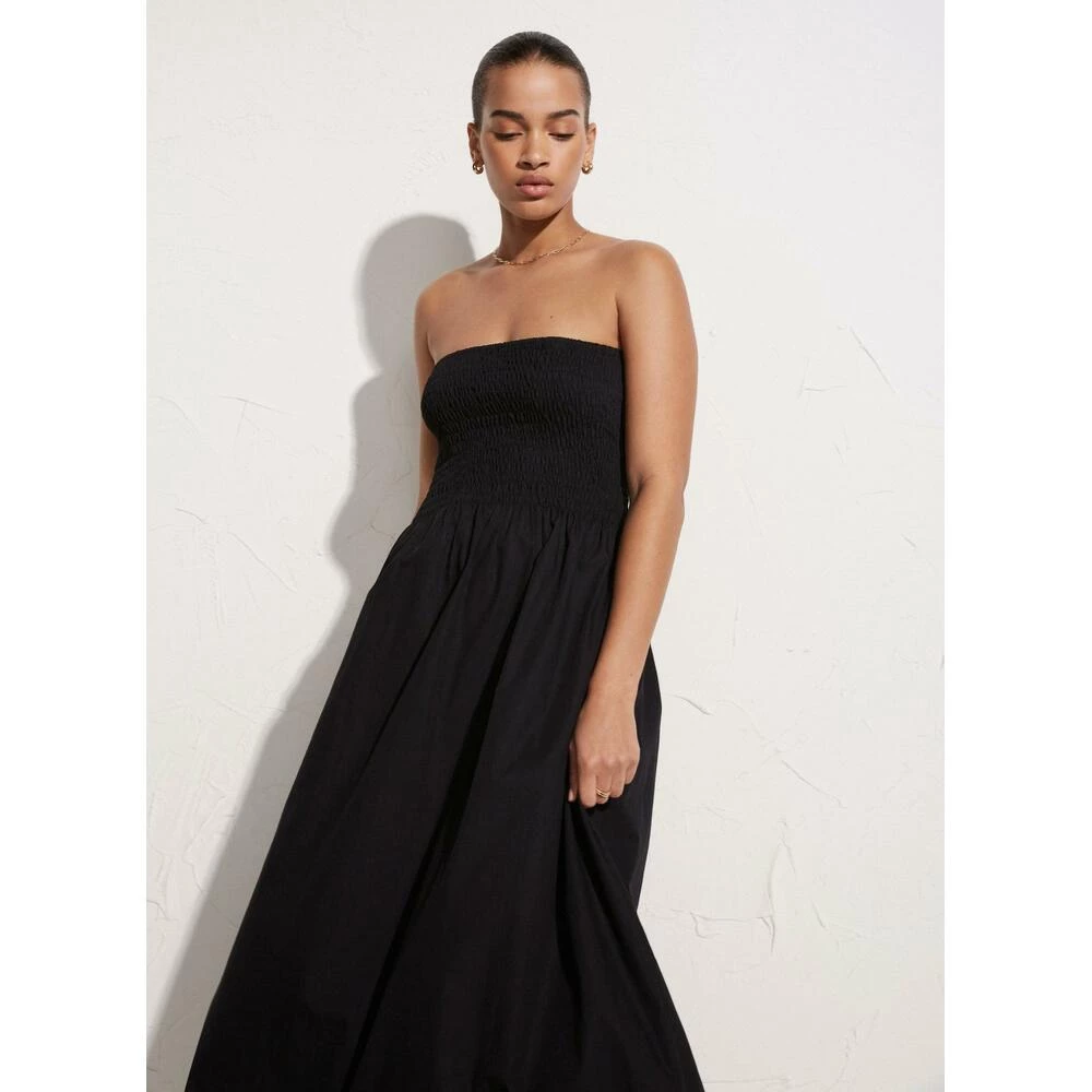 An exciting silhouette of our El Sol collection is the beautiful Madella Midi in Plain Black. Easy wearing by design, this strapless style has been cut from a lightweight, crisp OEKO-TEX100 ¨ CERTIFIED cotton poplin and features our signature shirred bodice for comfort. Detailed with pockets and offering a gathered midi length skirt, the Madella Midi is every bit as fun as it is functional. Nisaa is wearing a size Small and her measurements are Height: 176 cm, Bust: 82 cm, Waist: 58 cm, Hips: 90 cm. This garment runs true to size. If in-between sizes, we recommend sizing down. All of our garments are measured in centimetres and are of the garment laid flat. 100% Cotton Poplin – OEKO-TEX100 ® Certified. This garment is hand-made, hand-dyed and hand-printed in Bali, Indonesia. Due to this hand-made process each piece is unique and there can be slight irregularities in the print and colour of the garment. To ensure a long lasting garment life whilst caring for the environment please follow these instructions: Hand-wash in cold water or use lower temperature washes and delicate spin cycles. These care processes are more gentle on the garments and help to protect the colour, shape and structure of the fabric whilst reducing the amount of energy used. Avoid bleach and use environmentally friendly detergents. Avoid tumble dry and hang dry where possible. This saves electricity and avoids fibre degradation. Cool iron when needed.