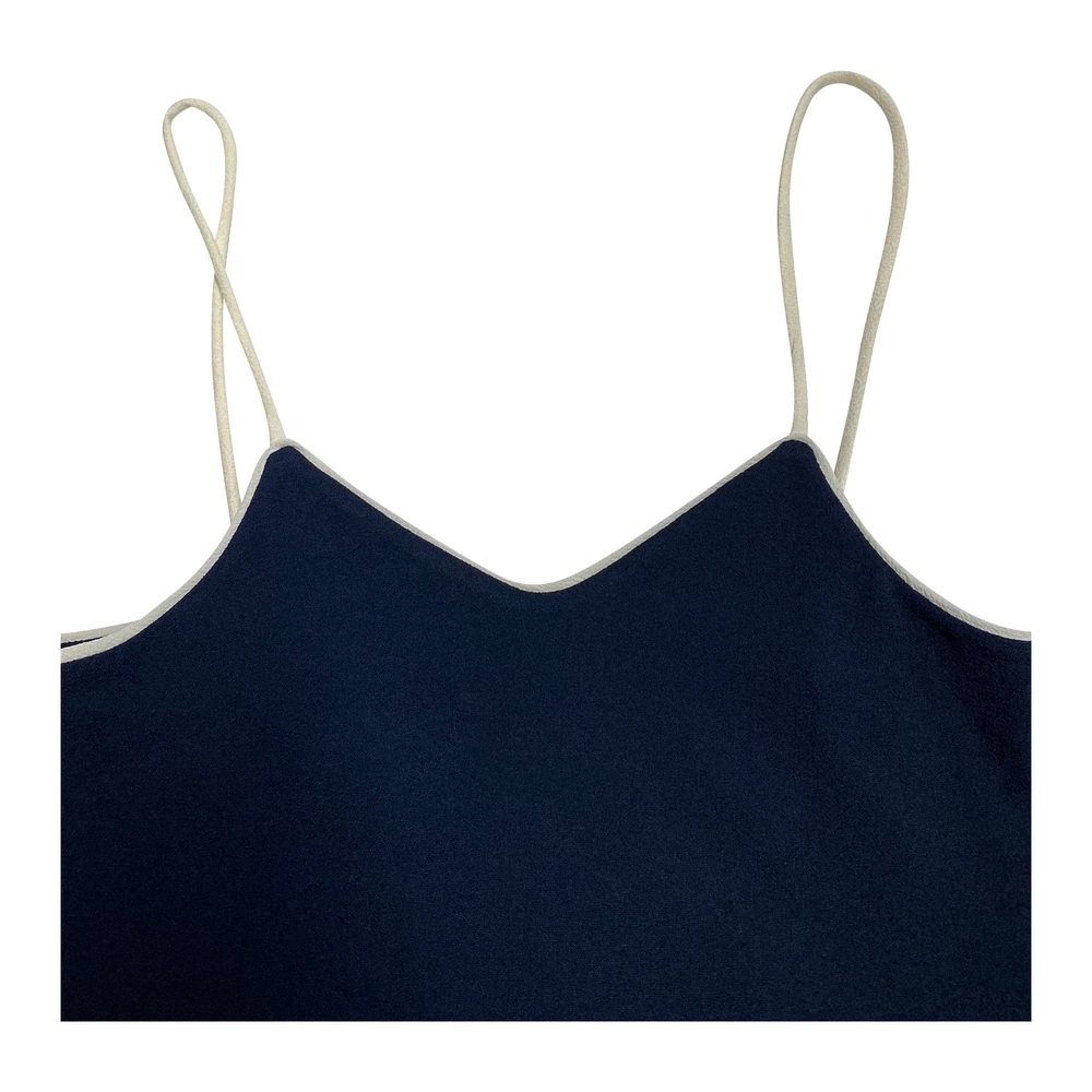 En nydelig glidekjole av Ganni laget av polyester i skyggen av marineblå. Denne midi-lengde kjolen har kontrasterende spaghetti stropper, en V-hals, peplum rundt midjen og en liten spalte på hemmen. Den kan styles med en vanlig skjorte under eller ha den alene med ditt valg av smykker. Ganni Clark Peplum Dress in Navy Blue Polyester Tilstand: Nytt med tagfarge: Navy Blue Materiale: Polyester Størrelse: IT38/FR34/UK6/XXS Sign of Wear: No SKU: 93960