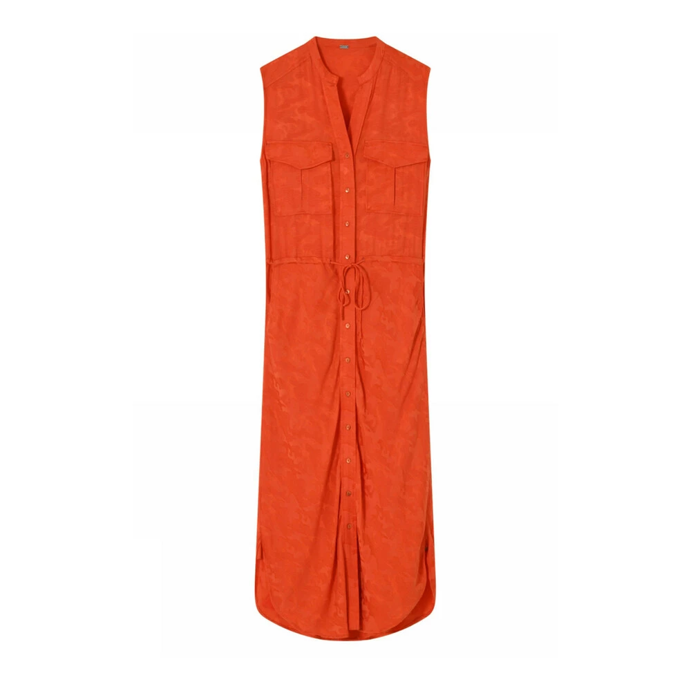 Vakker kjole fra Gustav med rund nakke og V-kutt, lommer på brystet og et fint diskret mønster. Kjolen kan også knyttes inn i midjen hvis du vil fremheve figuren, og så er den virkelig smart for et par sandaler eller lysbilder. · Fit: ALM · Modell: Britney, Long Bias Cut Dress Dresses 45509/7425 Tomat
