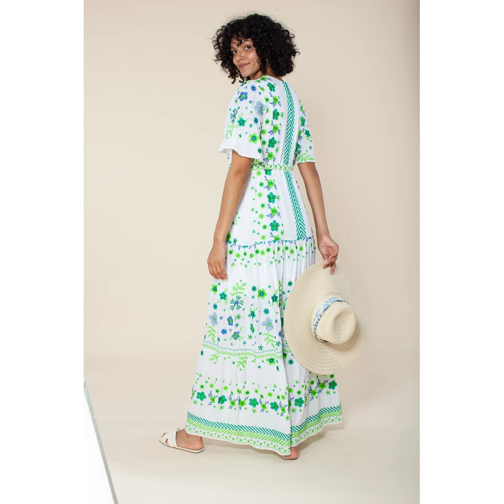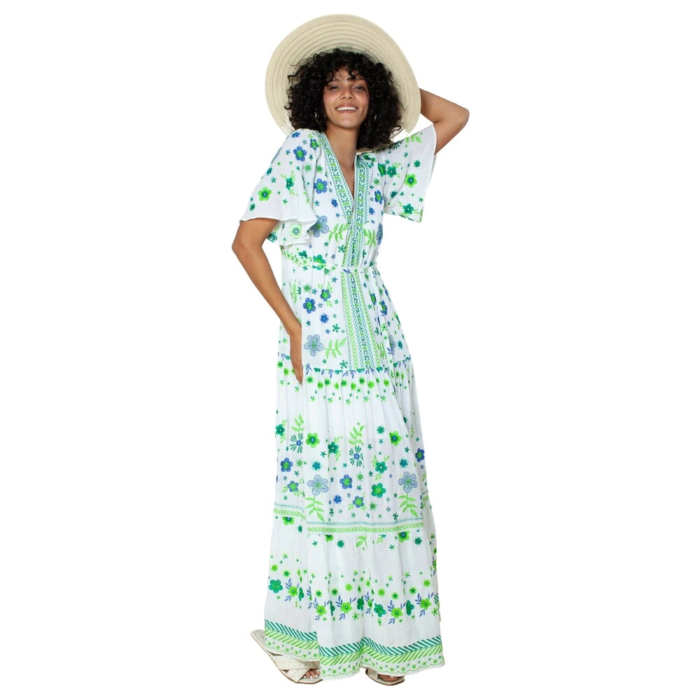 strikken og knytingen. Ellers løs og ledig kjole. Laget av rayon/viskose