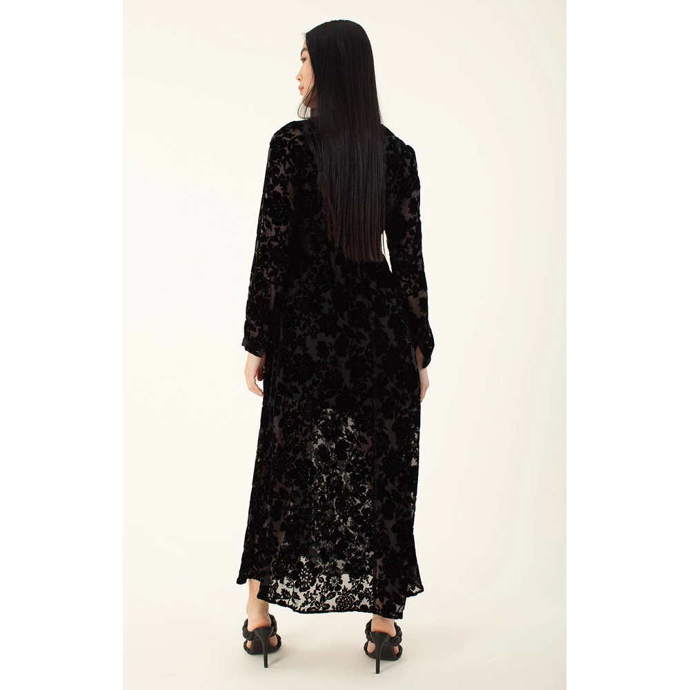 Nydelig ensfarget silkekjole fra Hale Bob. Kjolen er laget av silkevelour som gjør den svært eksklusiv og elegant.