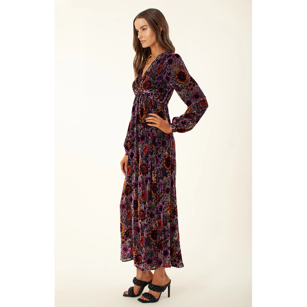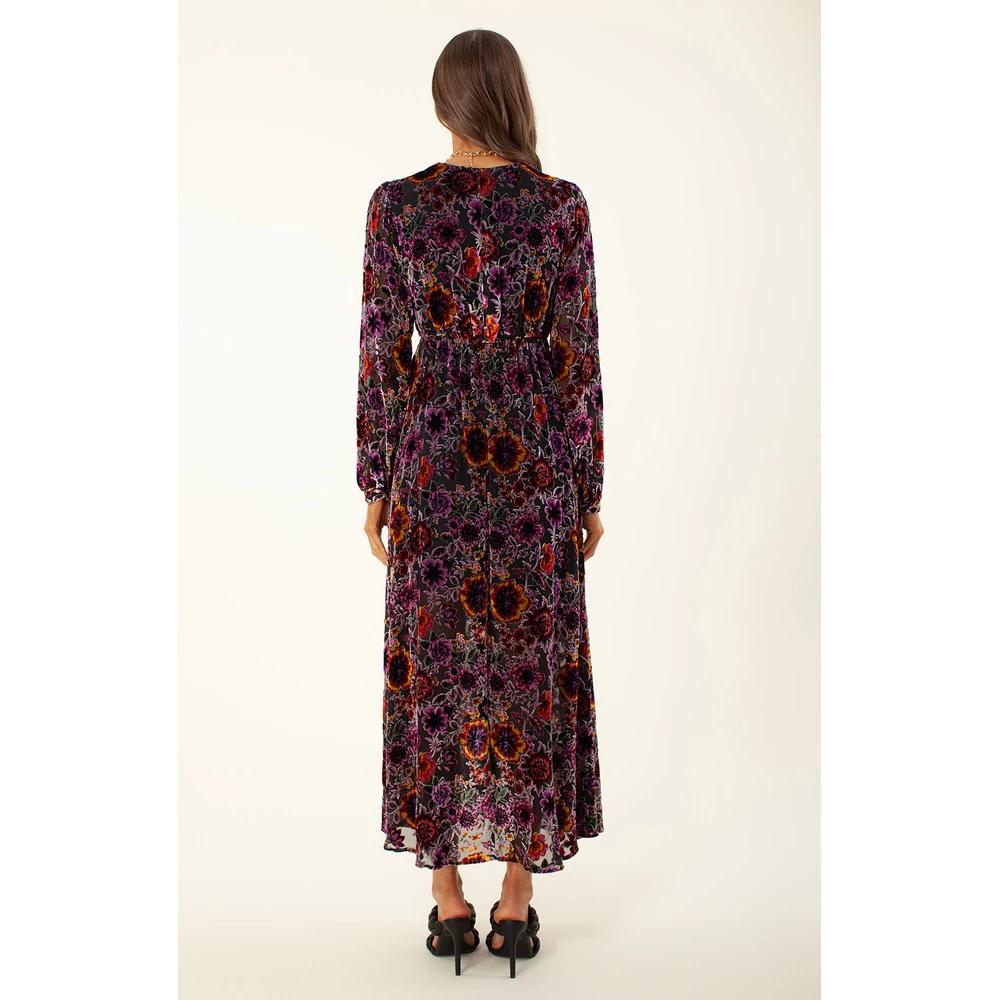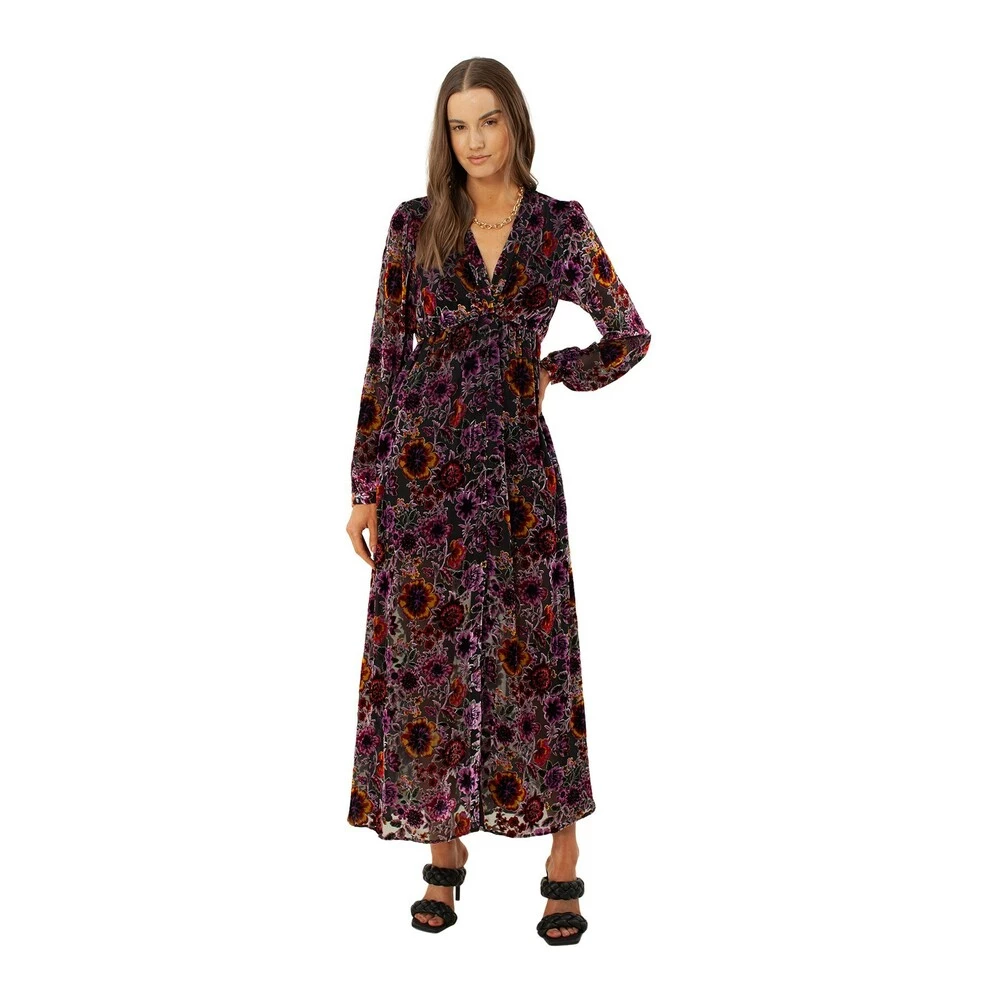 Nydelig maxikjole fra Hale Bob i unikt print. Stoffet består av silkevelour som gjør kjolen svært eksklusiv. Kjolen har elastisk strikk under livet.