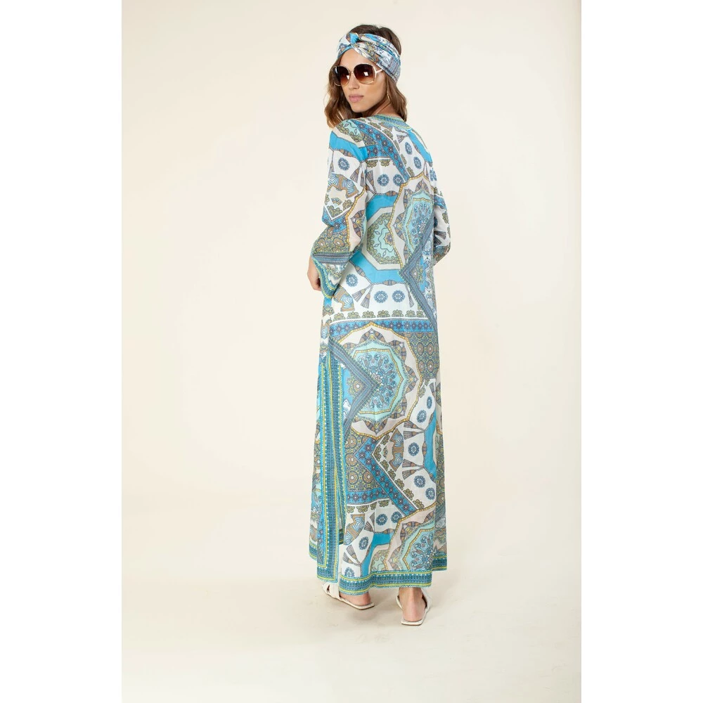Nydelig silkekjole fra Hale Bob i unikt print. Løs passform, splitt på