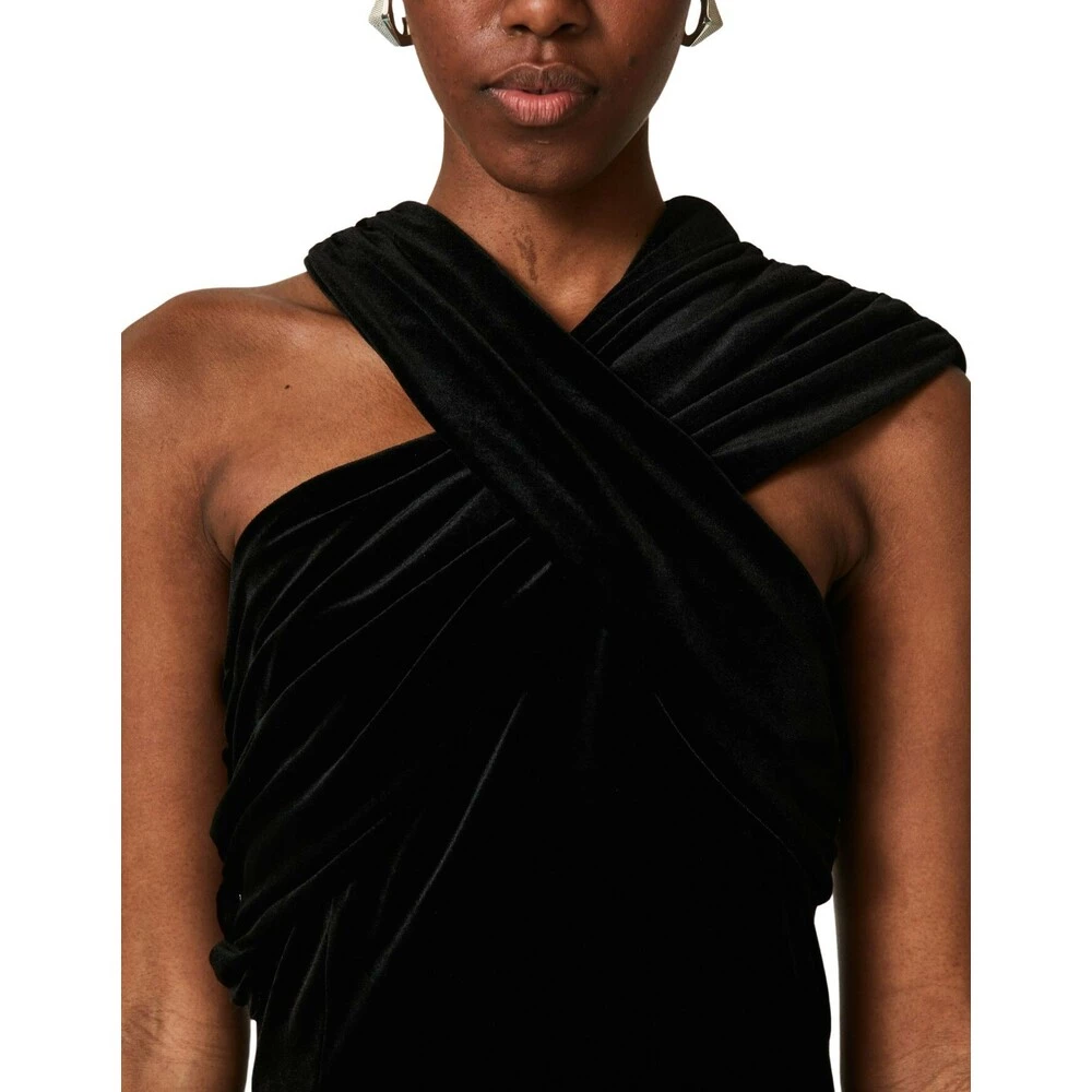 Long Drape Dress fra Han Kjøbenhavn. Nydelig lang kjole i velour. Splitt på siden. Nydelige detaljer øverst på kjolen. Glidelås på siden. Normal i størrelsen. Materiale: 90% Polyester og 10% Spandex.