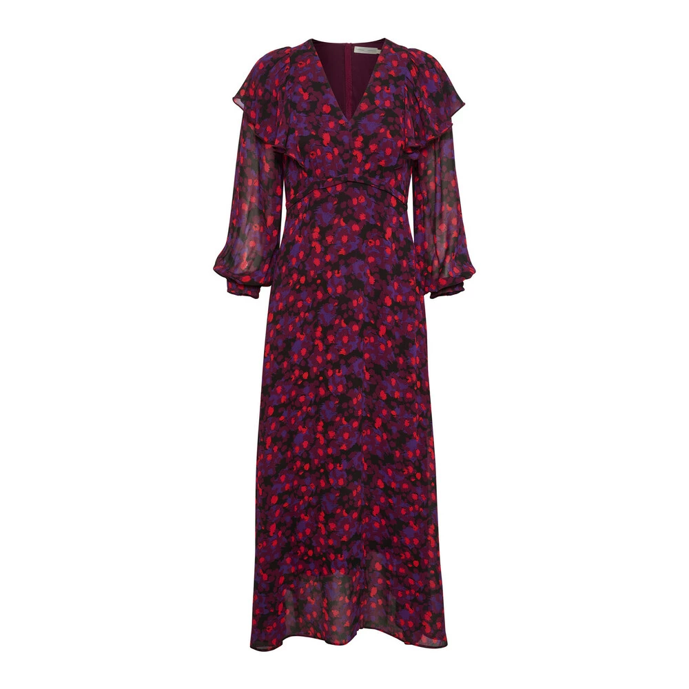 MERK! Ekstern lagring. Levering kan forlenges med 1-2 dager hvis varen ikke finnes i butikken vår akkurat nå. Vakker kjole fra twear med ¾ lange ermer, V-hals og nydelige ruffles rundt skuldrene og over brystet. Kjolen har også et fint trykk og en fin lett kvalitet. · Fit: ALM · Modell: Fahimaiw Dress Dresses 30107717 Purple Snow Dots · Kvalitet: 100% Viskose