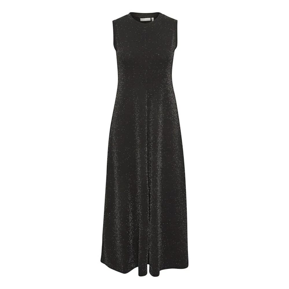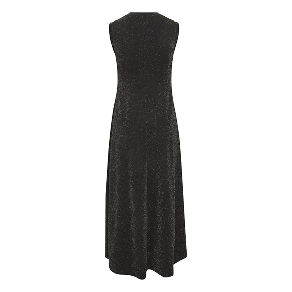 Lekker lang kjole med rund hals. Kjolen er uten ermer og har glitter i stoffet.
