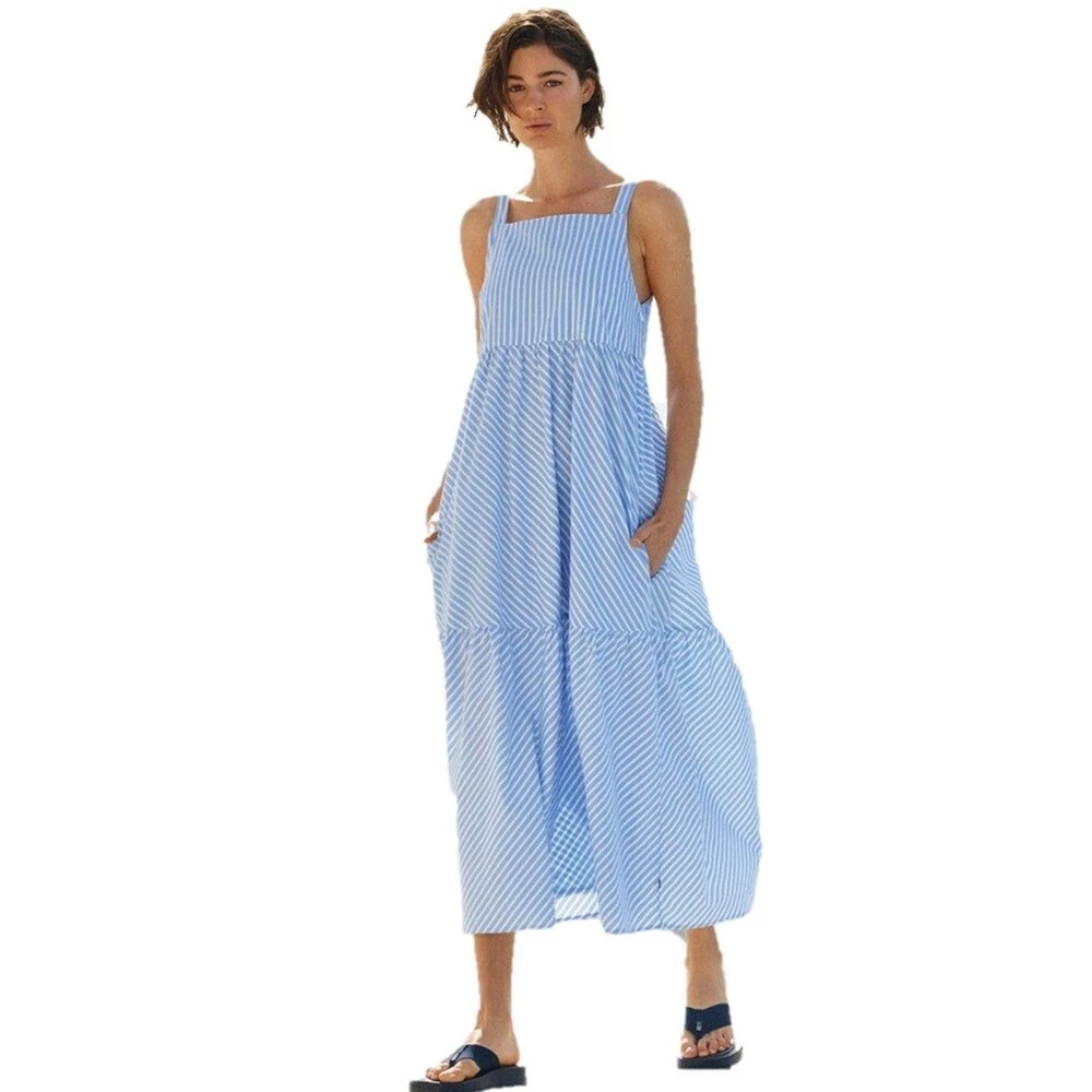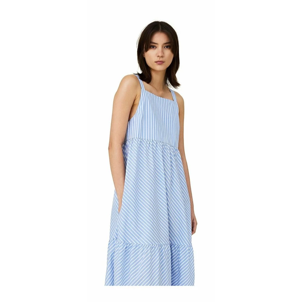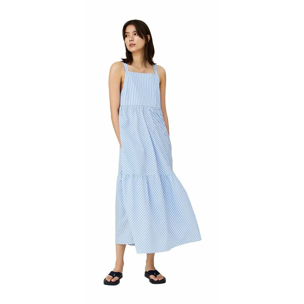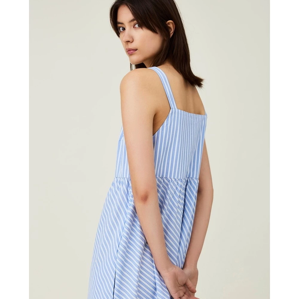 Delikate blå og hvite striper. Eksklusiv økologisk poplin bomull. Sidelommer.