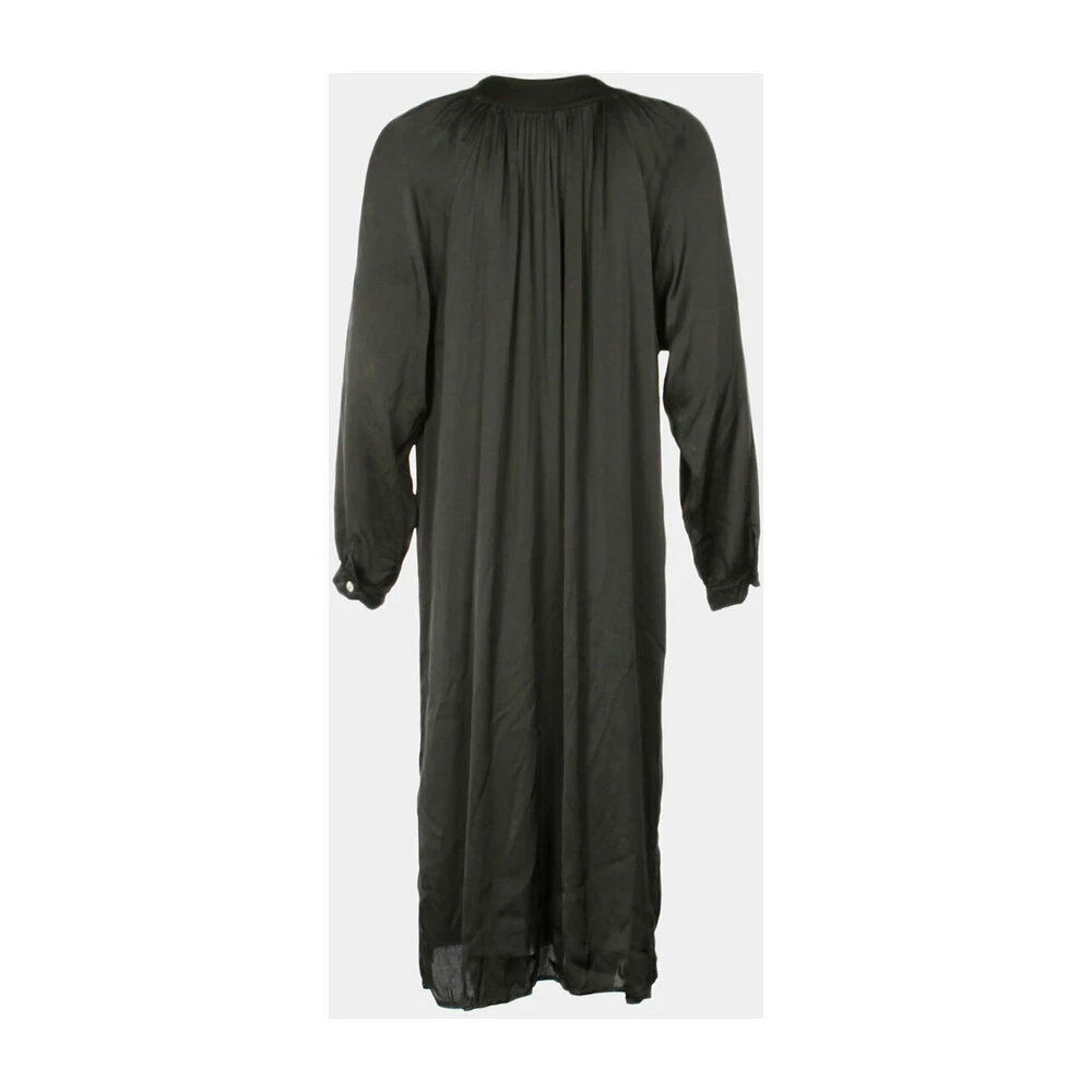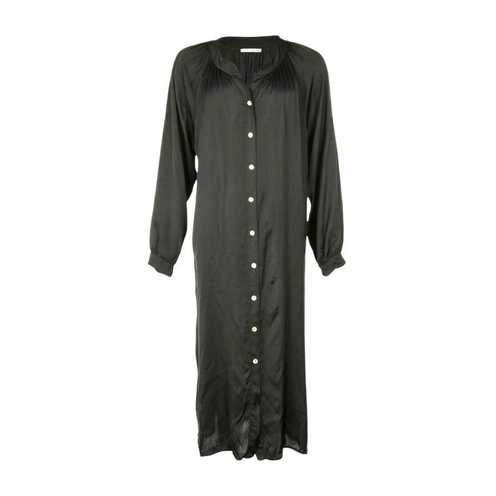 Tøff kjole i silke kvalitet. Knapper i front, kan brukses lukket og åpen. 70% Viskose og 30% Silke Finvask 30 grader. Passer størrelse 36-42.