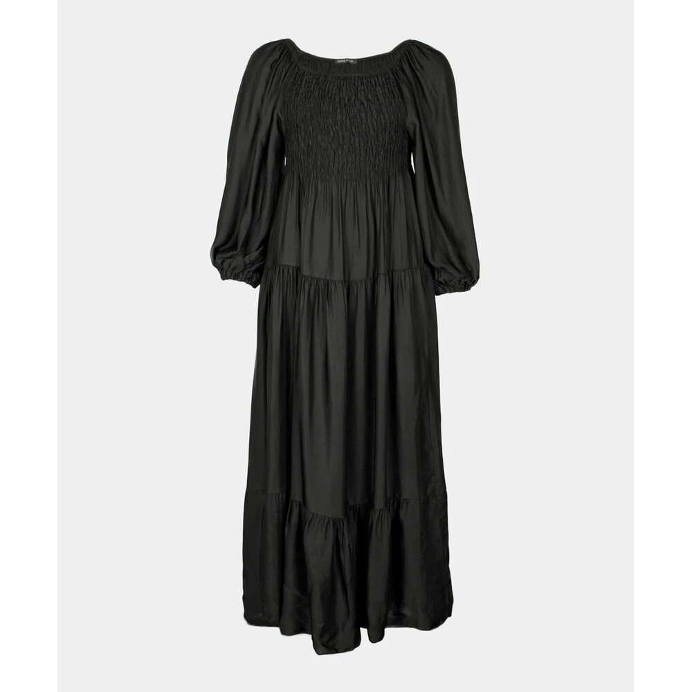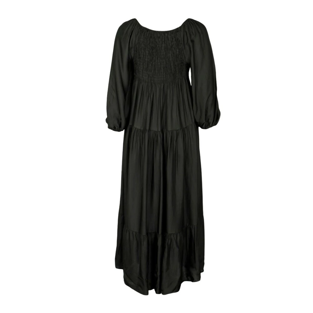 Fantastisk kjole i silke kvalitet. Bred vaffel søm over byste. Lange ermer med strikk. 70% Viskose og 30% Silke. Finvask 30 grader med milo eller andre vaskemiddler tilberegnet silke. One size 36-42.