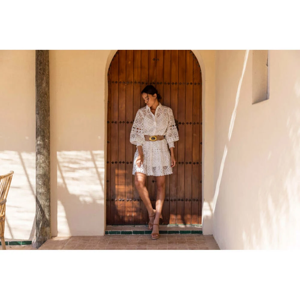 Lekker blondekjole fra Miss June! Høye mansjetter, krage og knepping hele veien i front. Elastisk underkjole følger med. Onesize Bryst 120 cm Ermlengde: 60 cm Kjolen: 95% viscose/ 5% elastane Underkjolen: 95% Rayon/ 5% spandex