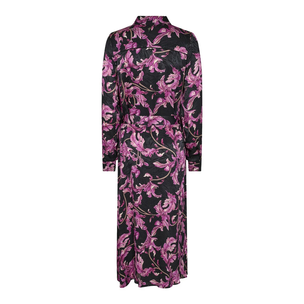 MERK! Ekstern lagring. Levering kan forlenges med 1-2 dager hvis varen ikke finnes i butikken vår akkurat nå. Vakker Jacquard-kjole fra Mosh med lange ermer, V-hals og en fin kvalitet med et vakkert blomstertrykk. Kjolen har også en fin krage, mansjetter og knappavslutning foran. Det kommer også med et matchende slipsbelte for å fremheve midjen. · Fit: ALM til litt løs -montering · Modell: Luni Crawl Dress Dresses 148220 Svart · Kvalitet: 50% Viscose (Ecovero) 50% Viskose