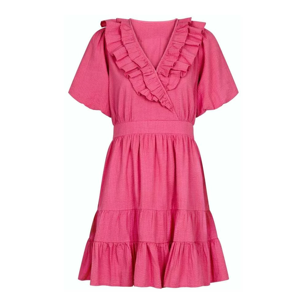 Erika Solid Dress fra Neo Noir. Supersøt rosa sommerkjole- perfekt til sommerens eventyr. Kjolen har korte, feminine ballongermer med puff på skuldrene og V-hals med rysjedetaljer. Erika Solid Dress fast midje som gir en superfin fasong, og et skjørt med A-fasong og volangkant nederst. Kuttet i en myk og luftig crepe. Sommerkjole Korte ballongermer V-hals Rysjedetaljer Fast midje Volang Blomsterprint Om merketNeo Noir er et dansk merke som ble grunnlagt i 2012 med fokus på å tilby klær til motebevisste kvinner, uavhengig av hennes personlige stil. Merket ble grunnlagt av Ole Overbeck og Niels-Henrik Henriksen, to drevne menn med mye erfaring innenfor klesbransjen og moteindustrien. Merket er i dag blitt en av våre favoritter- de leverer alltid trendy plagg, og er mestere på å lage plagg som passer for alle. De ulike kolleksjonene til Neo Noir består gjerne av klassiske stiler, blandet med de nyeste trendene. Plaggene er tidløse, noe som gjør at du kan bruke dem sesong etter sesong.