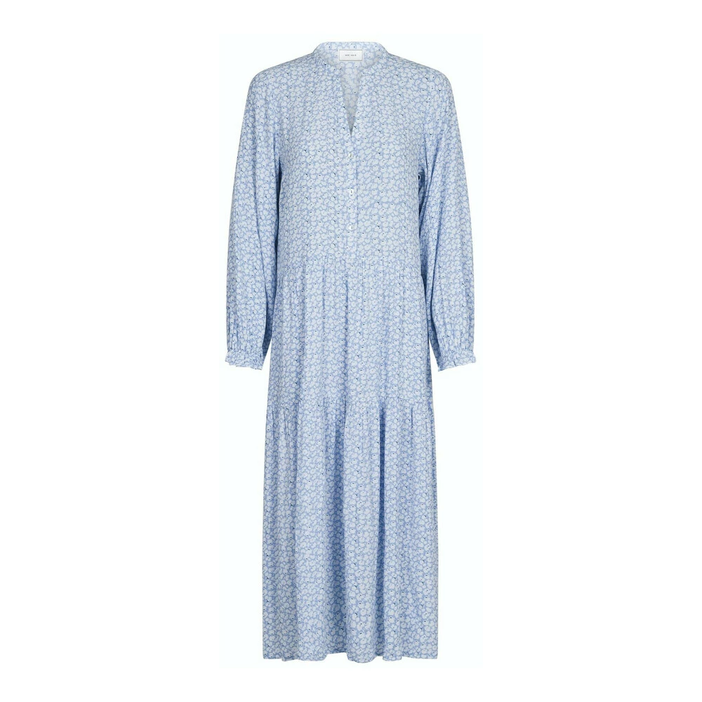 Vakker kjole fra Neo Noir med lange puffhylser, rund hals med V-hals og en nydelig lett kvalitet. Kjolen har også knapper langs fronten og en bred frill i bunnen av skjørtet. · Fit: Litt løs · Målinger: Størrelse 36: Måling av brystet: 50 cm. x 2. Lengde: 125 cm. · Modell: 158402 Layli Floral Dresses Dresses 158402 Layli Floral Light Blue ·