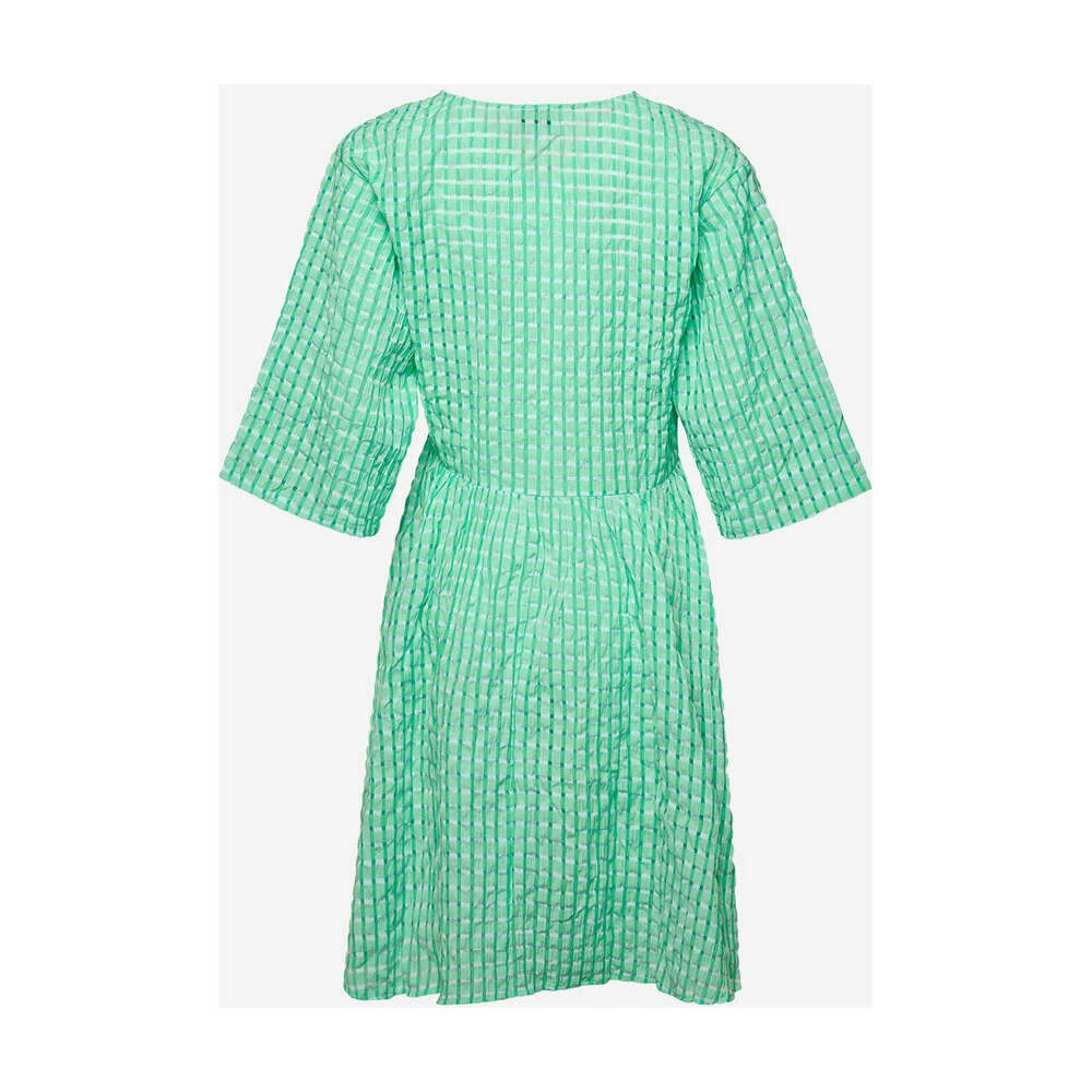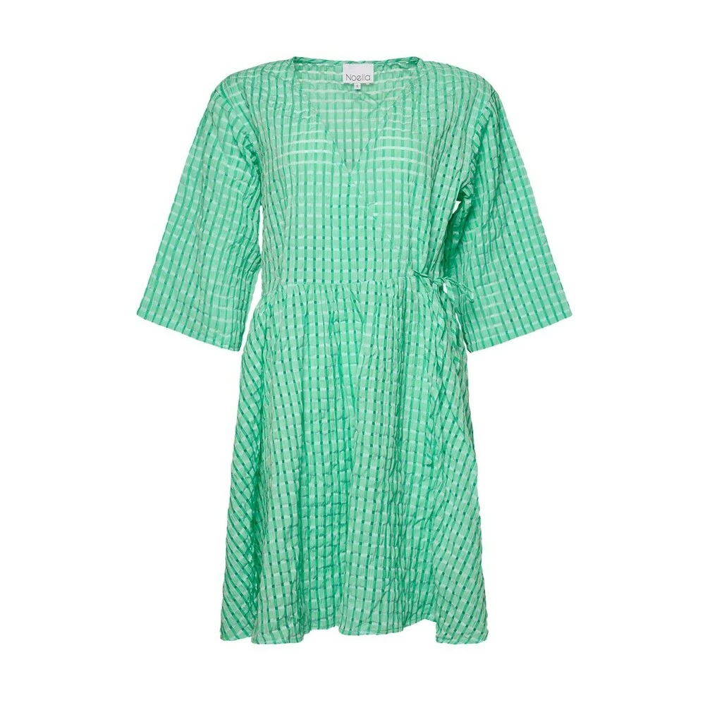 Dicte Sophie Dress fra Noella. Nydelig omslagskjole med fine ruter. Kjolen har store ermer og går ned i en v-hals. Dicte Sophie kjolen skjærer i midjen og skaper et fint feminint skjørt. I tillegg er kjolen meget ammevennlig på grunn av omslags-effekten. Kjolen er den perfekte sommerkjolen. Normal i størrelsen. Laget av 44 % bomull, 10 % viskose og 46 % polyester.