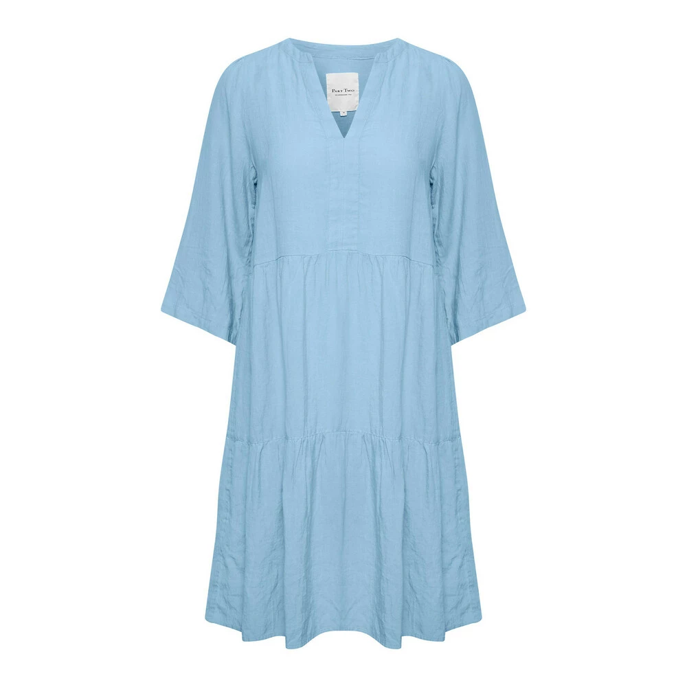 MERK! Ekstern lagring. Levering kan forlenges med 1-2 dager hvis varen ikke finnes i butikken vår akkurat nå. Søt og enkel hørt kjole fra del to med ¾ lange ermer og V-hals. Kjolen har et fint kutt og ruffle -effekter som også gir et fint og feminint utseende. · Fit: Lett løs -Fitting · Modell: Nahlaspw DR Kjoler 30307179 Skumring Blå · Kvalitet: 100% Lytt
