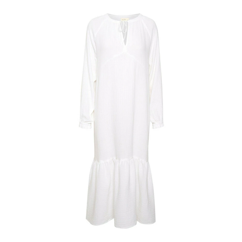 MERK! Ekstern lagring. Levering kan forlenges med 1-2 dager hvis varen ikke finnes i butikken vår akkurat nå. Fin og enkel kjole fra del to med lange ermer, en uformell passform og deilig bomullskvalitet. Kjolen har også en fin bred ruffle kant i bunnen av skjørtet som gir den et veldig fint utseende. · Fit: Lett løs -Fitting · Modell: Oannapw DR Kjoler 30307302 Bright White · Kvalitet: 100% bomull