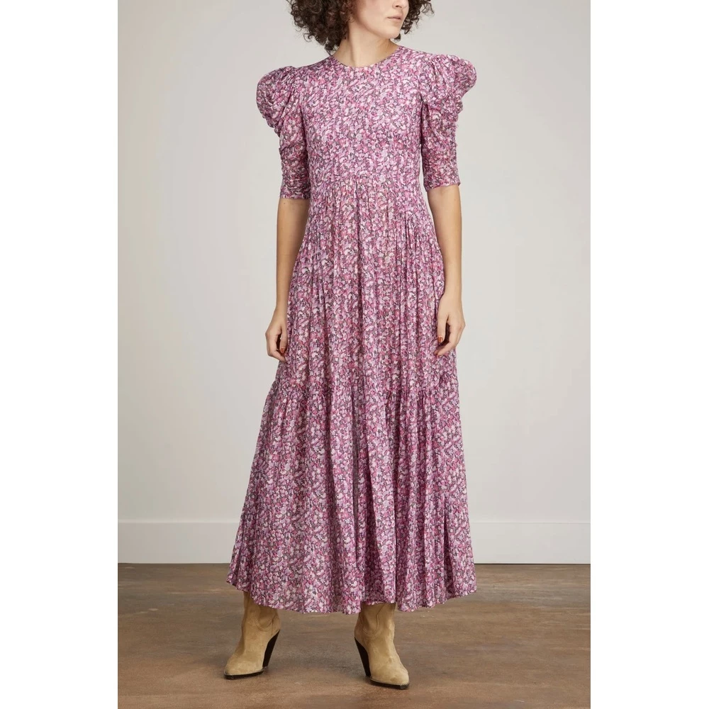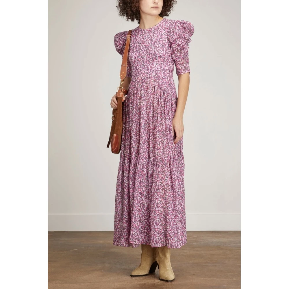 Isabel Marant Sichelle-kjole i rosa er en maxi-kjole med halve ermer i floral-bomull med trykk, med puffskuldre og stor nøkkelhullsåpning bak. Har puffede ermer og 3 forskjellige snorer i ryggen. Passer normal størrelse, ta din normale størrelse. Detaljer: Glidelås Åpen rygg med snorer 100% bomull ______________________________________________________________________________ The Isabel Marant Sichelle Dress in Pink is a half sleeve maxi dress in printed florl cotton, with puff shoulders and large keyhole opening at back. Features puffed sleeves and 3 different stringties in the back. Fits true to size, take your normal size. Details: Zip fastening Open back with strings 100% cotton
