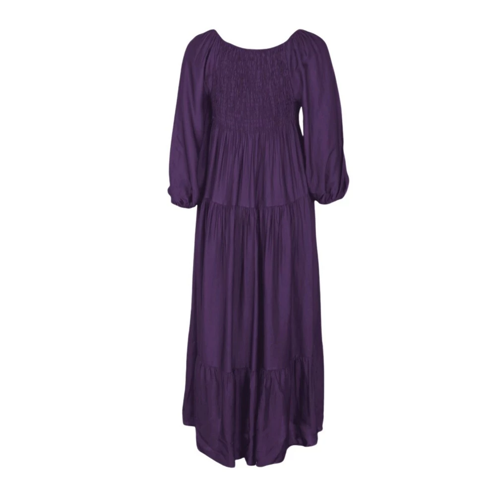 Fantastisk kjole i silke kvalitet. Bred vaffel søm over byste med god stretch. Lange ermer med strikk. 70% Viskose og 30% Silke. Finvask 30 grader med milo eller andre vaskemiddler tilberegnet silke. One size 36-42. 135 cm lang. Modellene er 175cm høye og bruker vanligvis M/L.