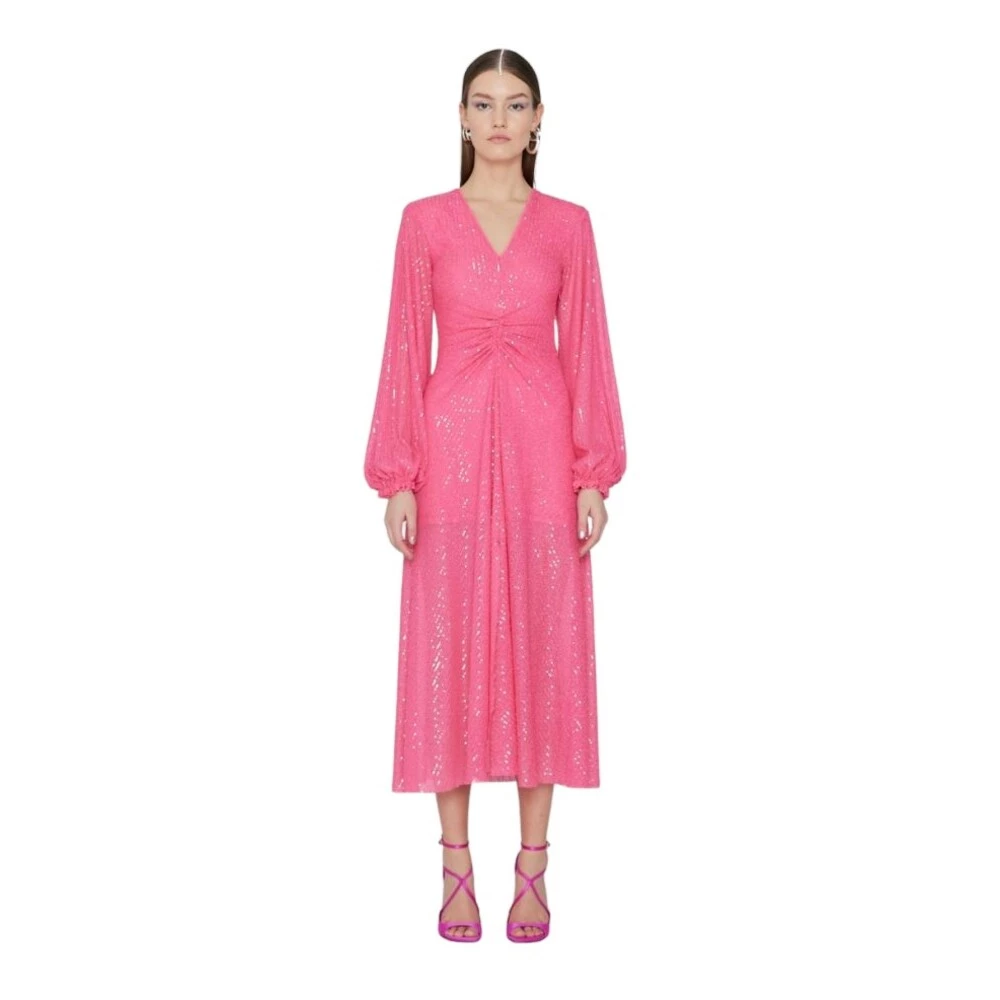 The Sequin Long-sleeved Dress er en vakker paljettkjole med voluminøse ermer. Den har v-hals og flatterende rynker foran.