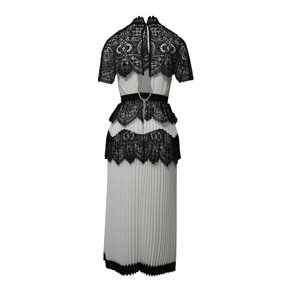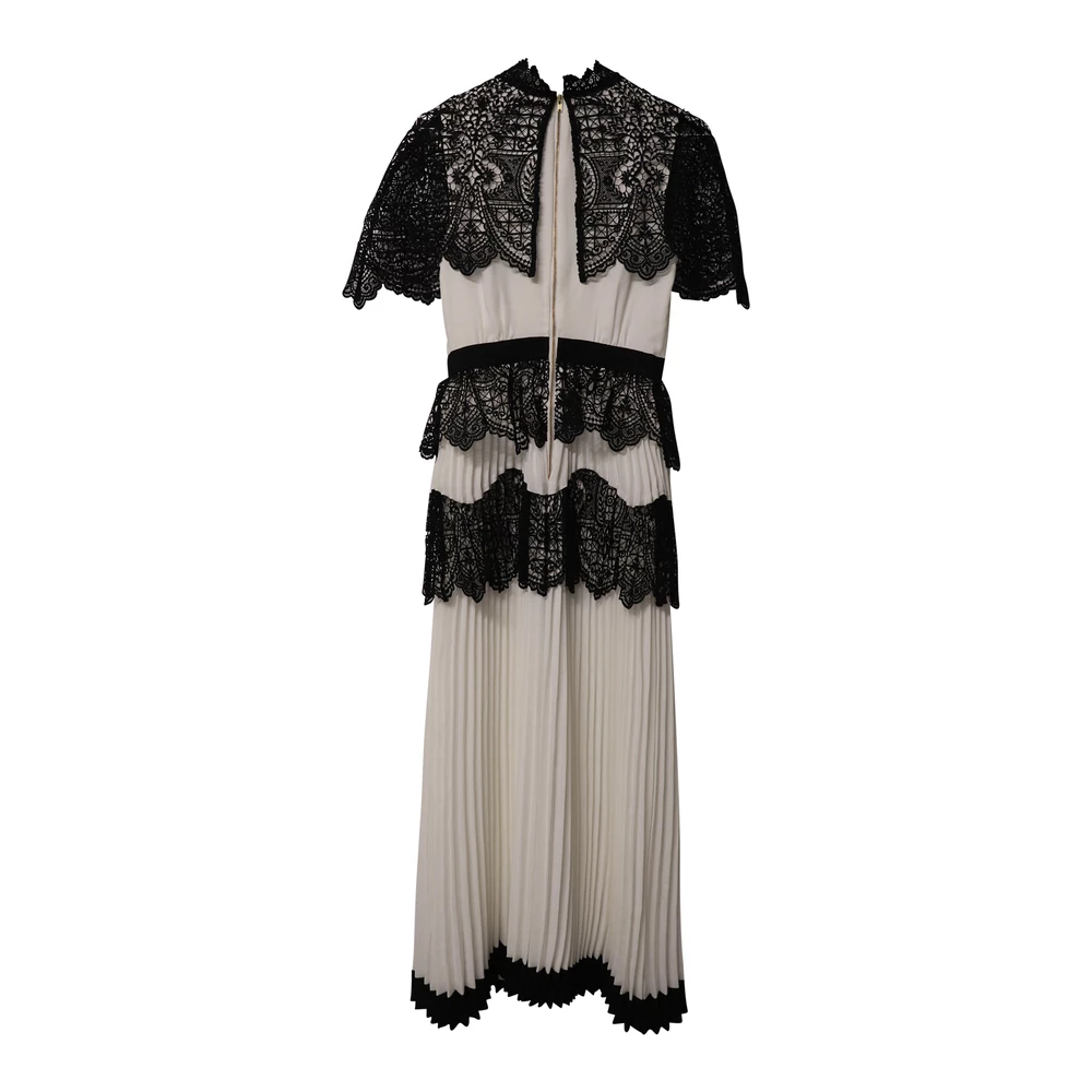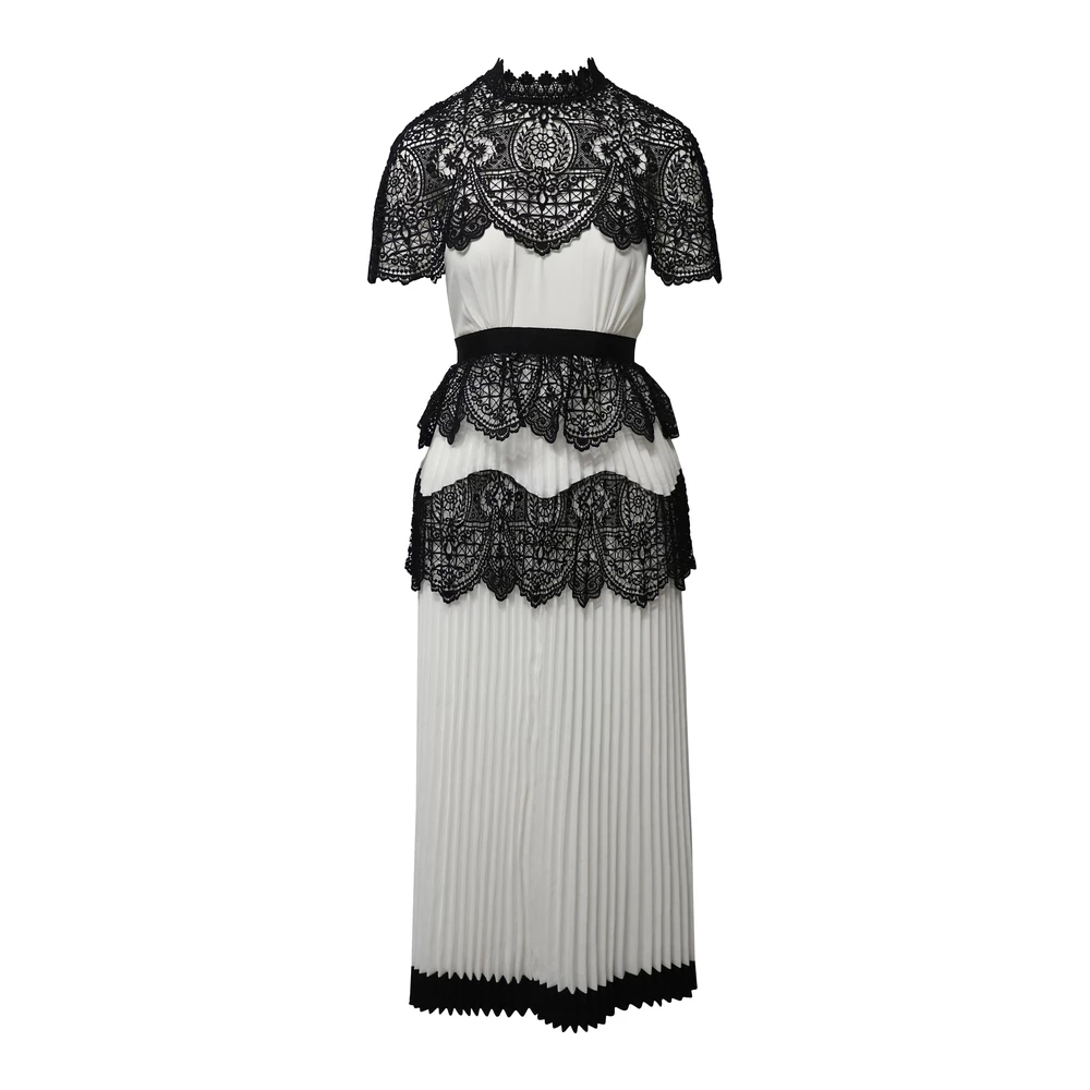 Denne kjolen fra selvportraittet er flaunting av en blanding av teksturer og design, og fortryller deg med sin uendelige sjarm og pliss! Det er skreddersydd ved hjelp av svart og hvitt stoff, som er forsterket med plisserte formasjoner. Den har korte ermer og lukking av glidelås-type. Denne selvportraittskapingen er en drøm som er verdt å eie! Selvportraitt plissert blonder kjole i hvit polyestermateriale: Polyester Farge: Svart og hvitt størrelse: UK6/US2/XS Tilstand: Utmerket tegn på slitasje: ingen SKU: 176487