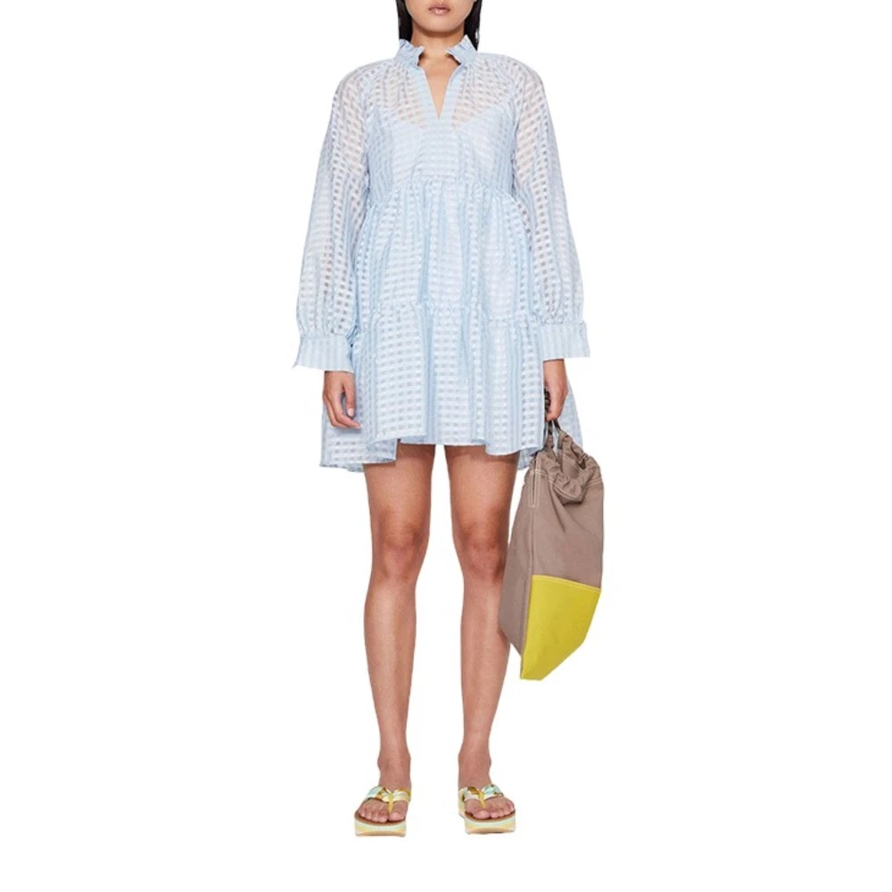 Rutete isblå kjole Jasmine er en klassisk Goya kjole med en leken og voluminøs silhuett.