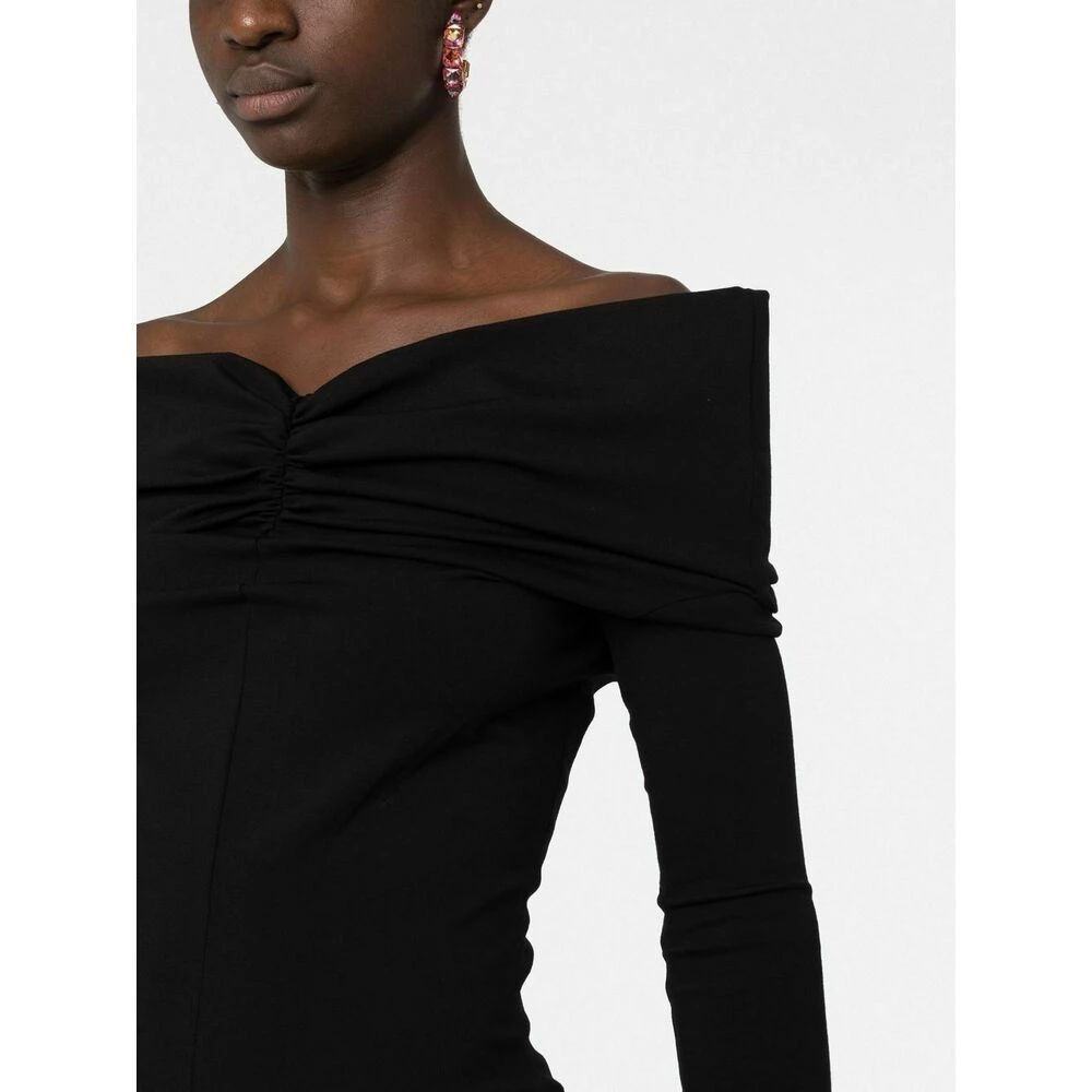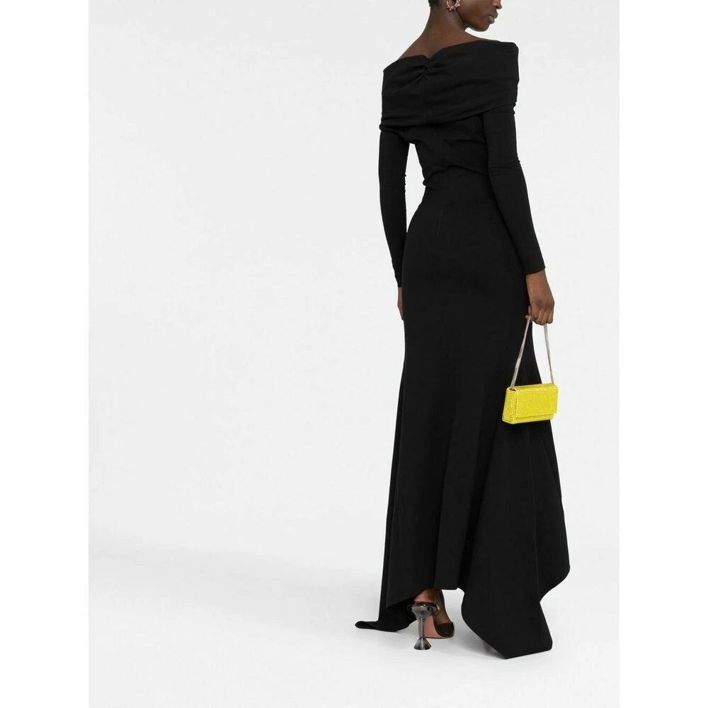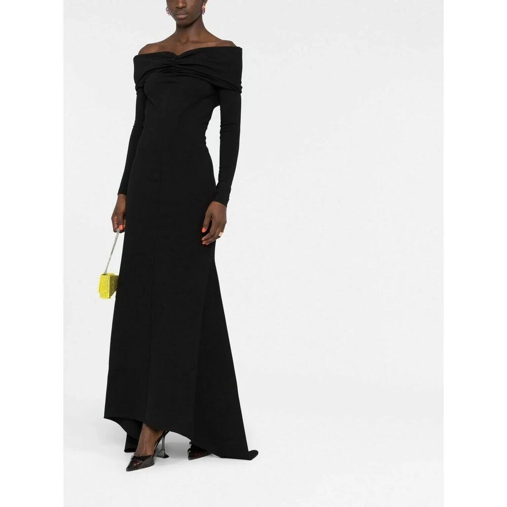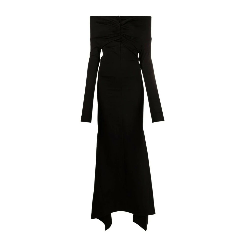 – Designerfarge: Black- kjæreste hals- Ruched Detaljing- Off-Shoulder- Lange ermer- Maxi- Asymmetrisk hem-gulvlengde- laget i Italia