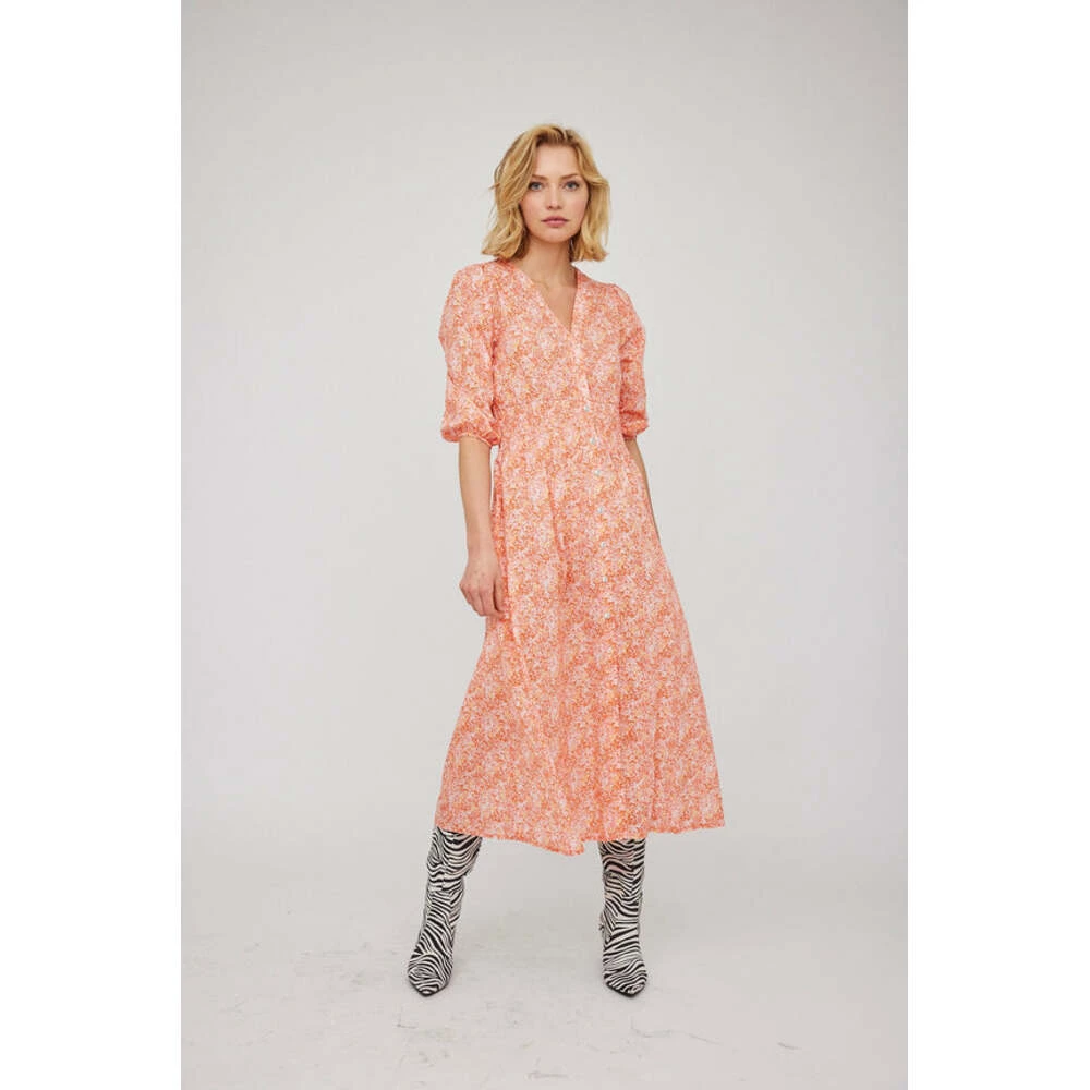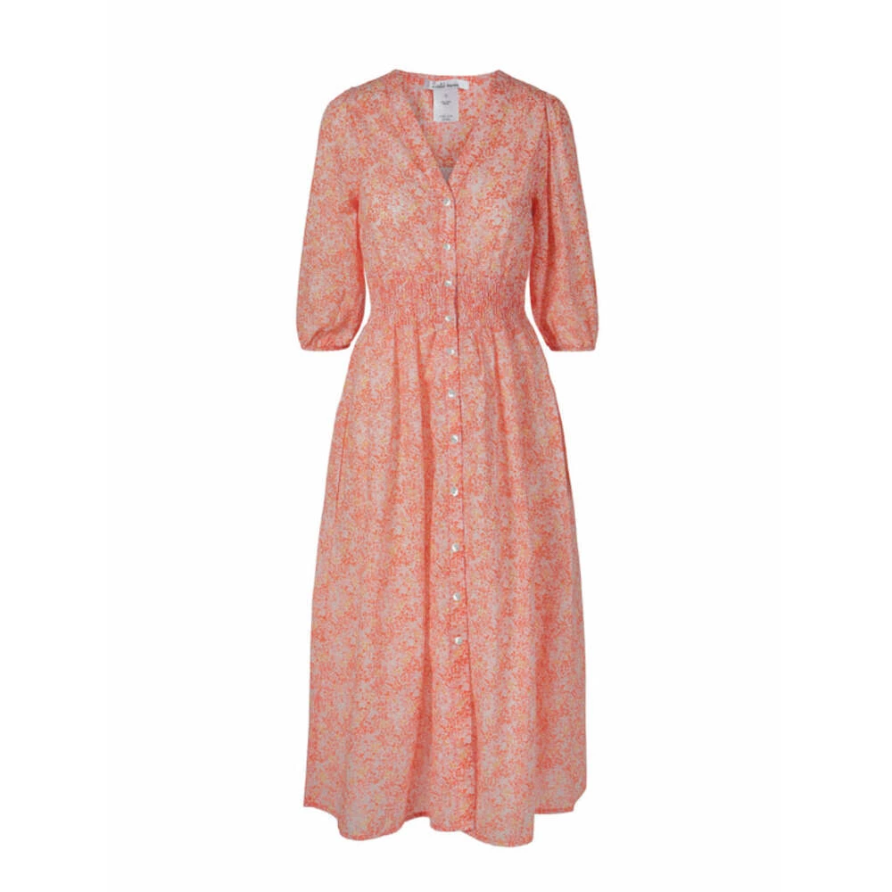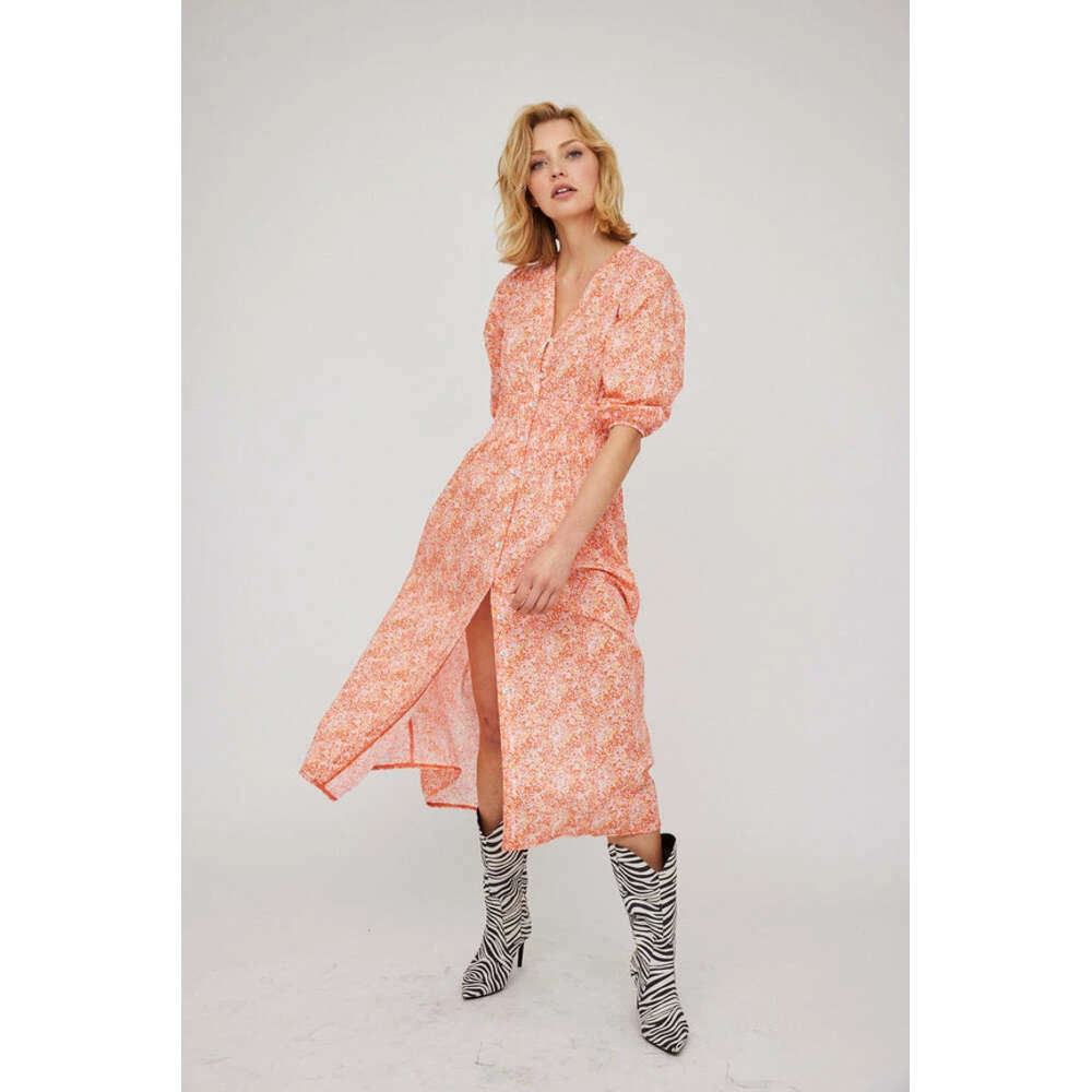 The Greenpoint Dress fra Untold Stories er en kjole med et levende blomstermønster med lett oppblåste ermer. Den er laget av myk, pustende bomull, og festes i midjen med et rynket belte som forvandles til et flytende langt skjørt.