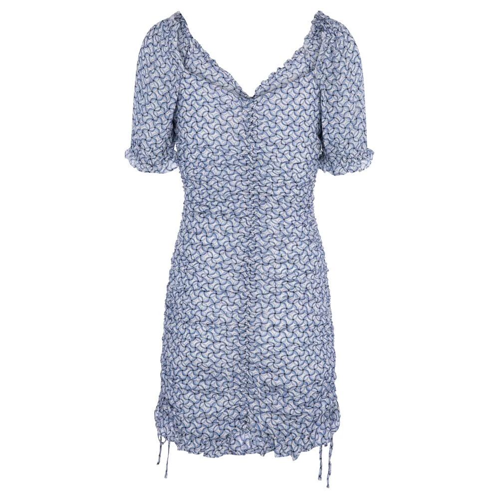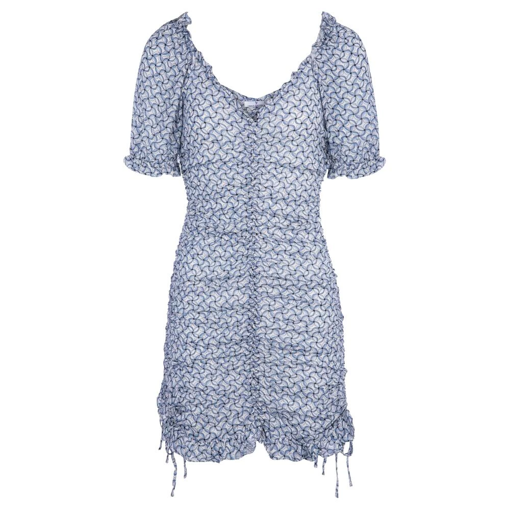 Josephine Dress fra Urban Pioneers. Feminin kjole med rysjer. Strikk på ermene. Kan brukes on og off skulder. Glidelås på siden. Snøringer på siden. Normal i størrelsen. Materiale: 100% EcoVero Viscose Chiffon.
